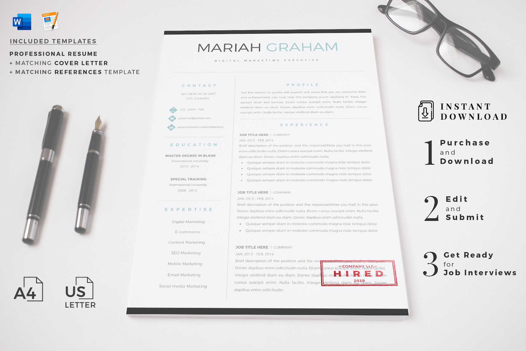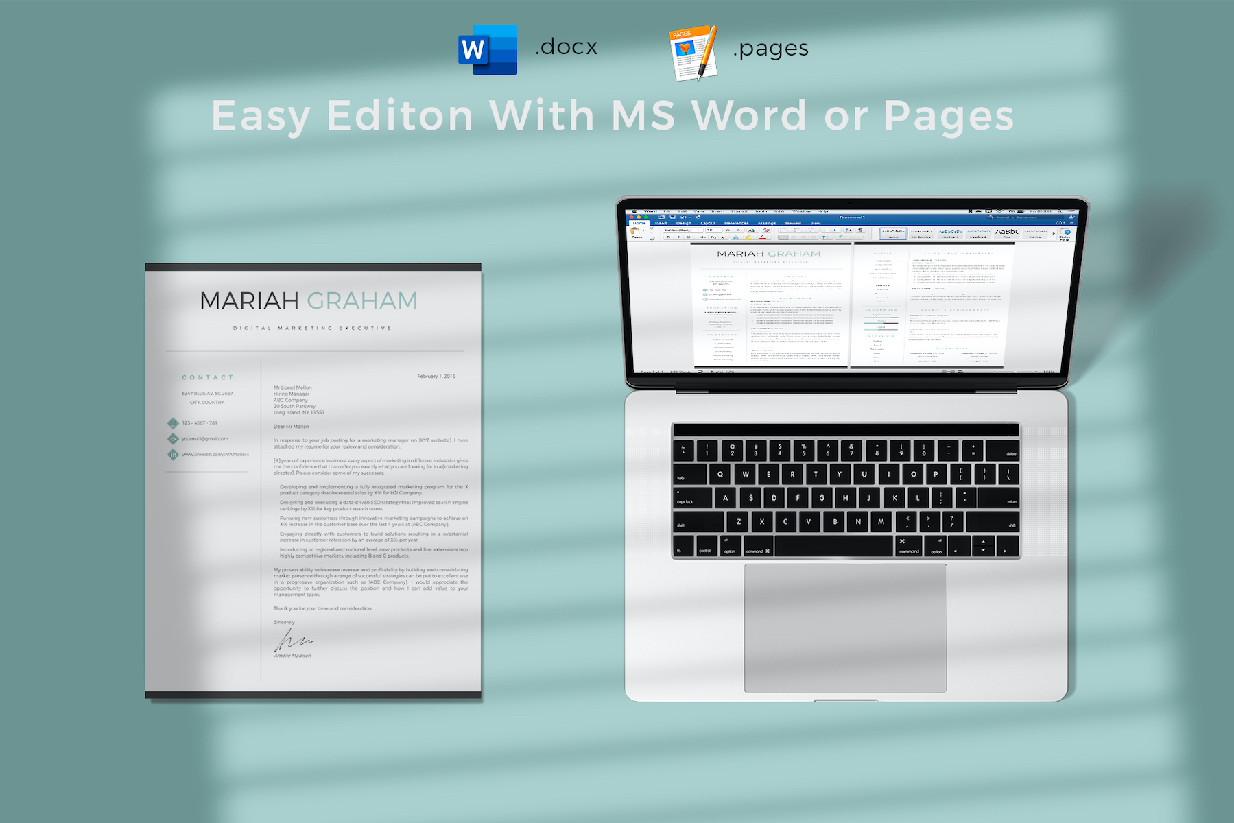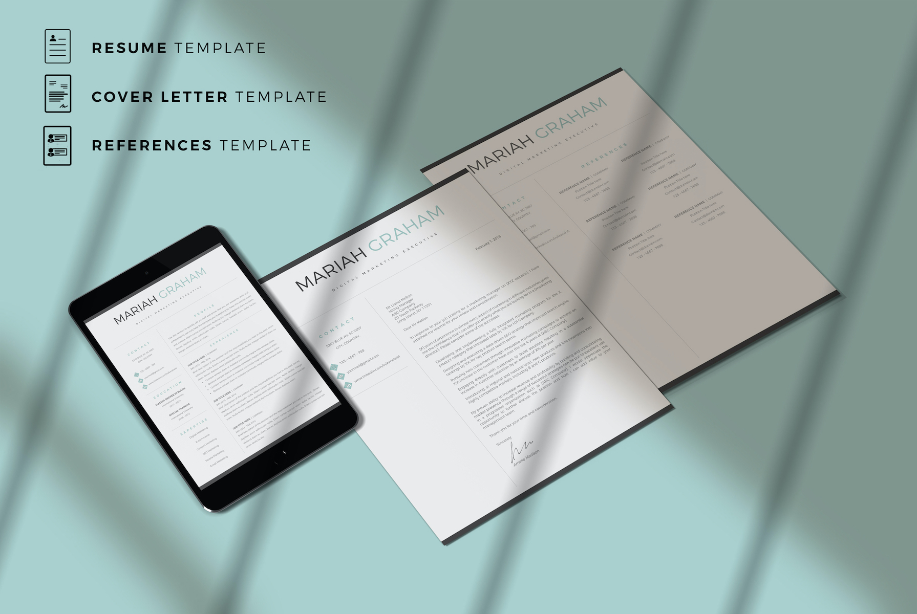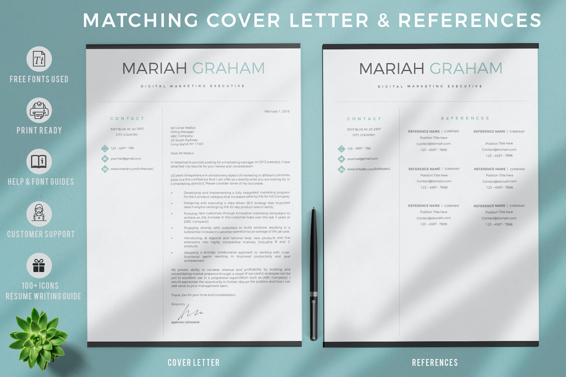 MARIAH - Professional Resume Template & Cover Letter with References Page. Marketing CV Modern