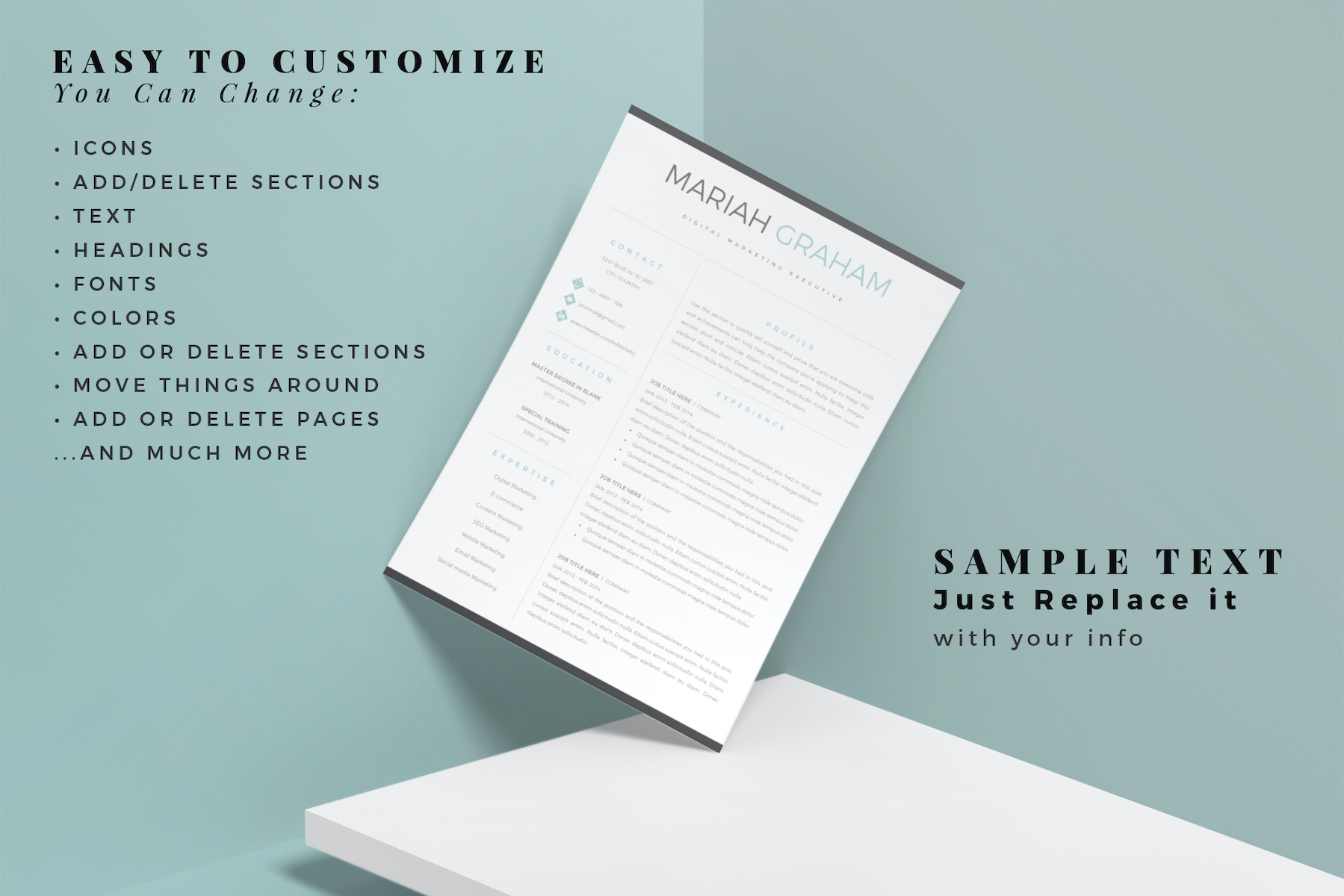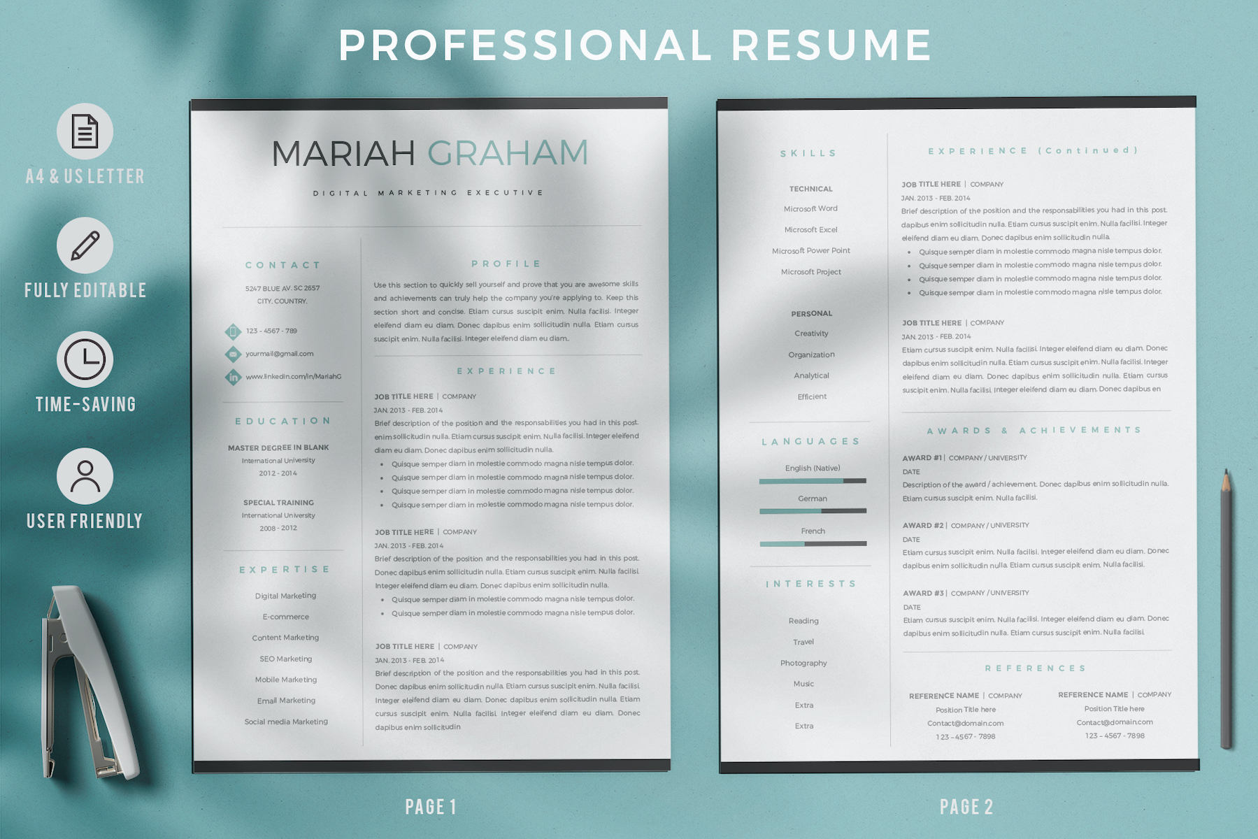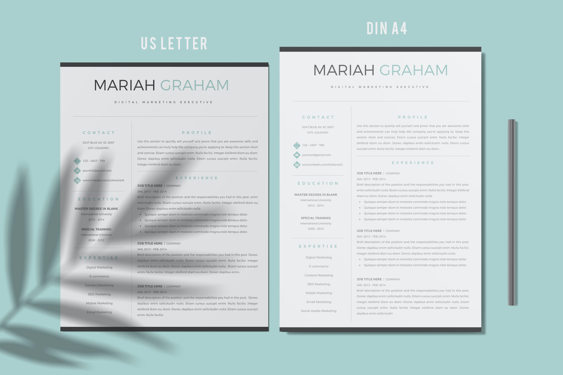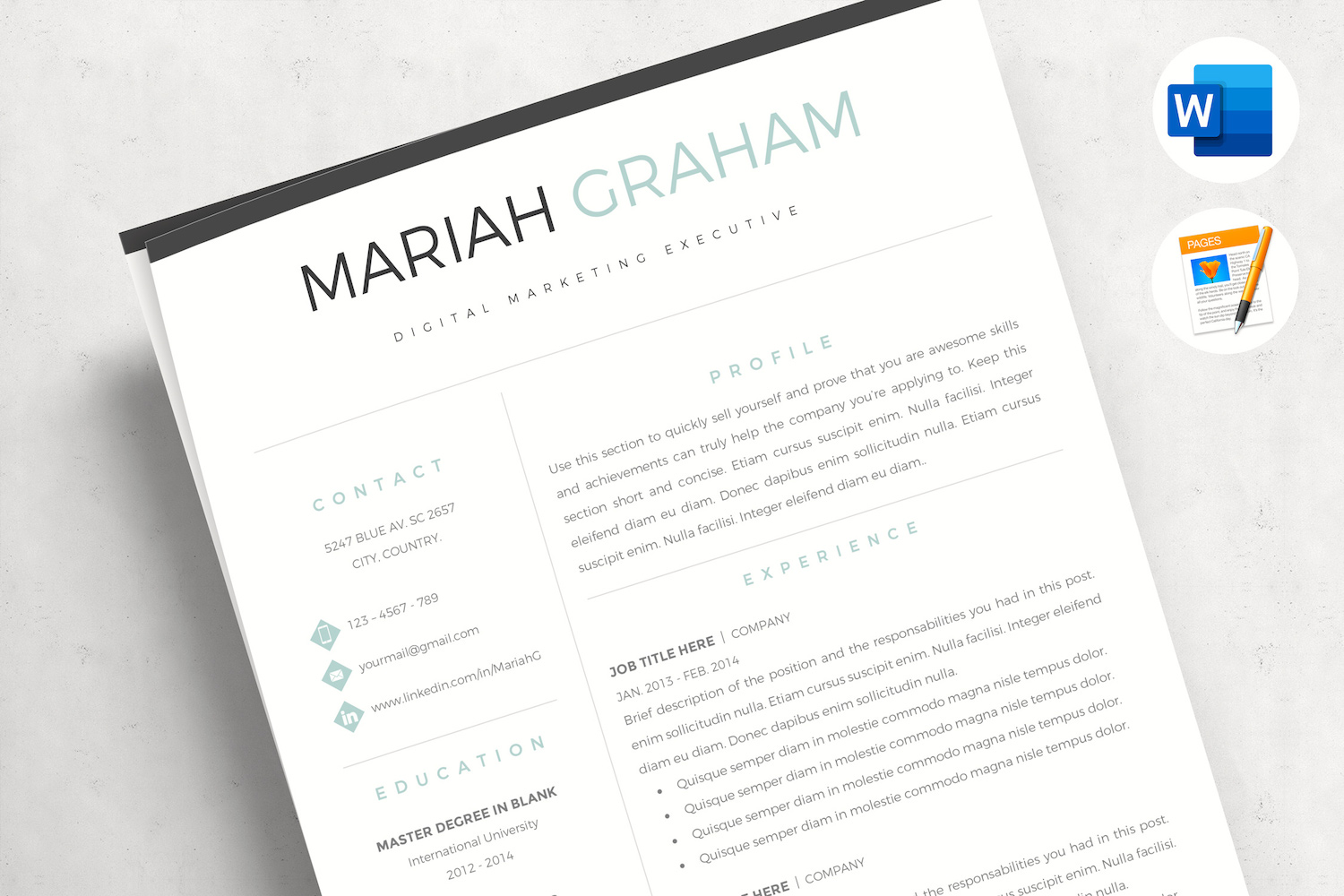 MARIAH - Professional Resume Template & Cover Letter with References Page. Marketing CV Modern