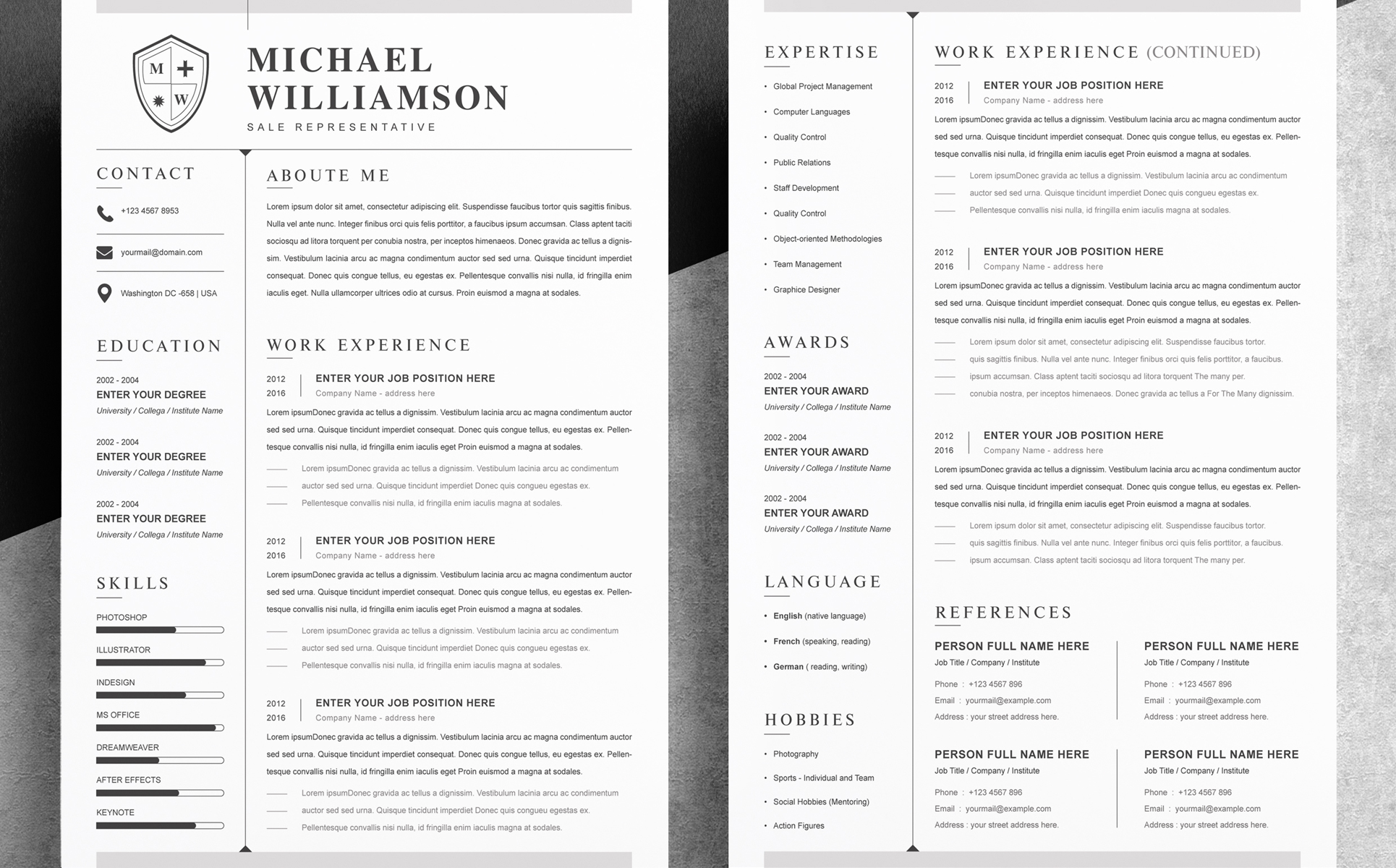 - Open the template in **Word, Pages, Photoshop, or Illustrator** and replace my "dummy" text with your resume content