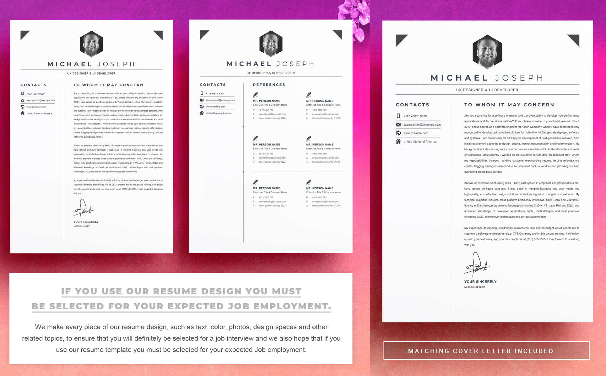 We make every piece of our resume design, such as text, color, photos, design spaces and other related topics, to ensure that you will definitely be selected for a job interview and we also hope that if you use our resume design you must be selected for your expected Job employment.
