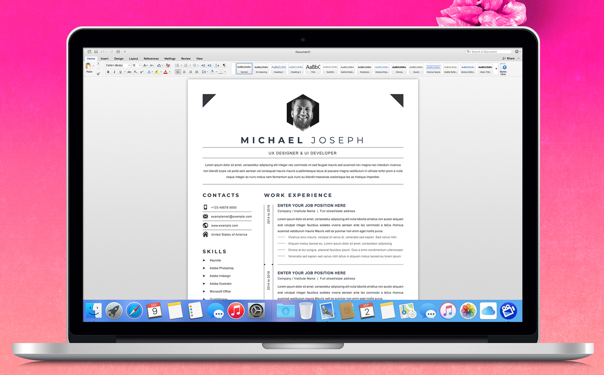 - Open the template in **Word, Pages, Photoshop, or Illustrator** and replace my "dummy" text with your resume content