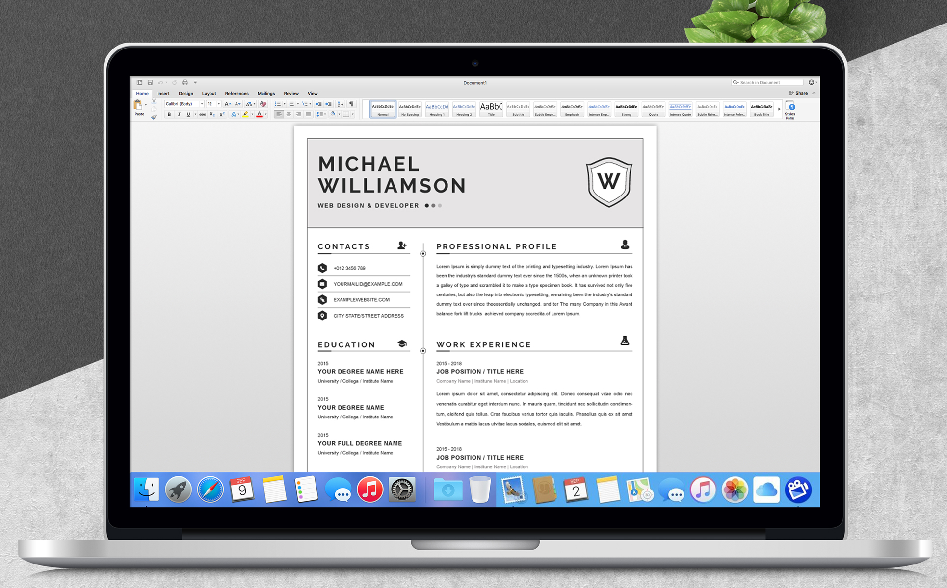 - Open the template in **Word, Pages, Photoshop, or Illustrator** and replace my "dummy" text with your resume content