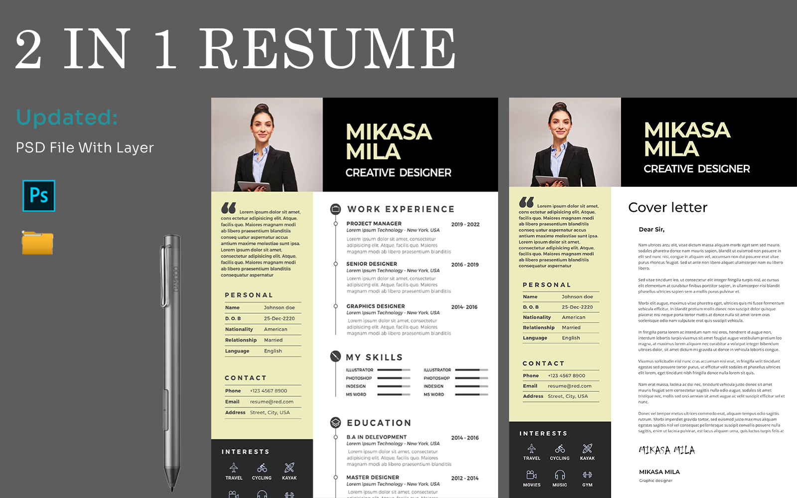 Mikkasa The Professional Resume & Cover Letter Resume Template