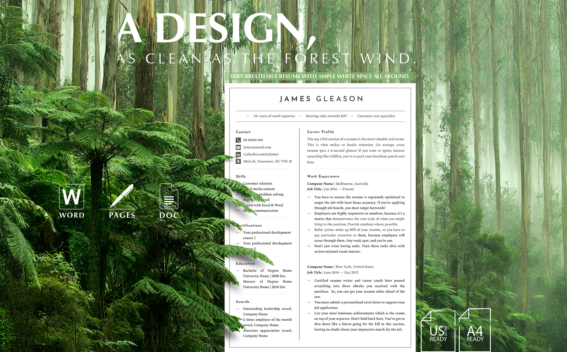 Minimalist Resume Template | ATS-Friendly CV for Word, Pages & Google Docs | Cover Letter