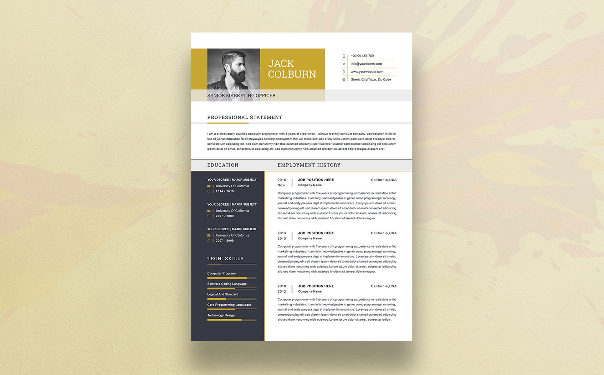 Stand out from the crowd with this modern, professional resume template — perfect for job seekers, career professionals, and students. Designed with clean typography, elegant structure, and smart sections, this resume ensures your information is easy to read and visually impressive to recruiters. This template works seamlessly in Canva, Microsoft Word, Adobe Photoshop, and Illustrator, making it simple for you to edit, personalize, and print — no design experience needed!