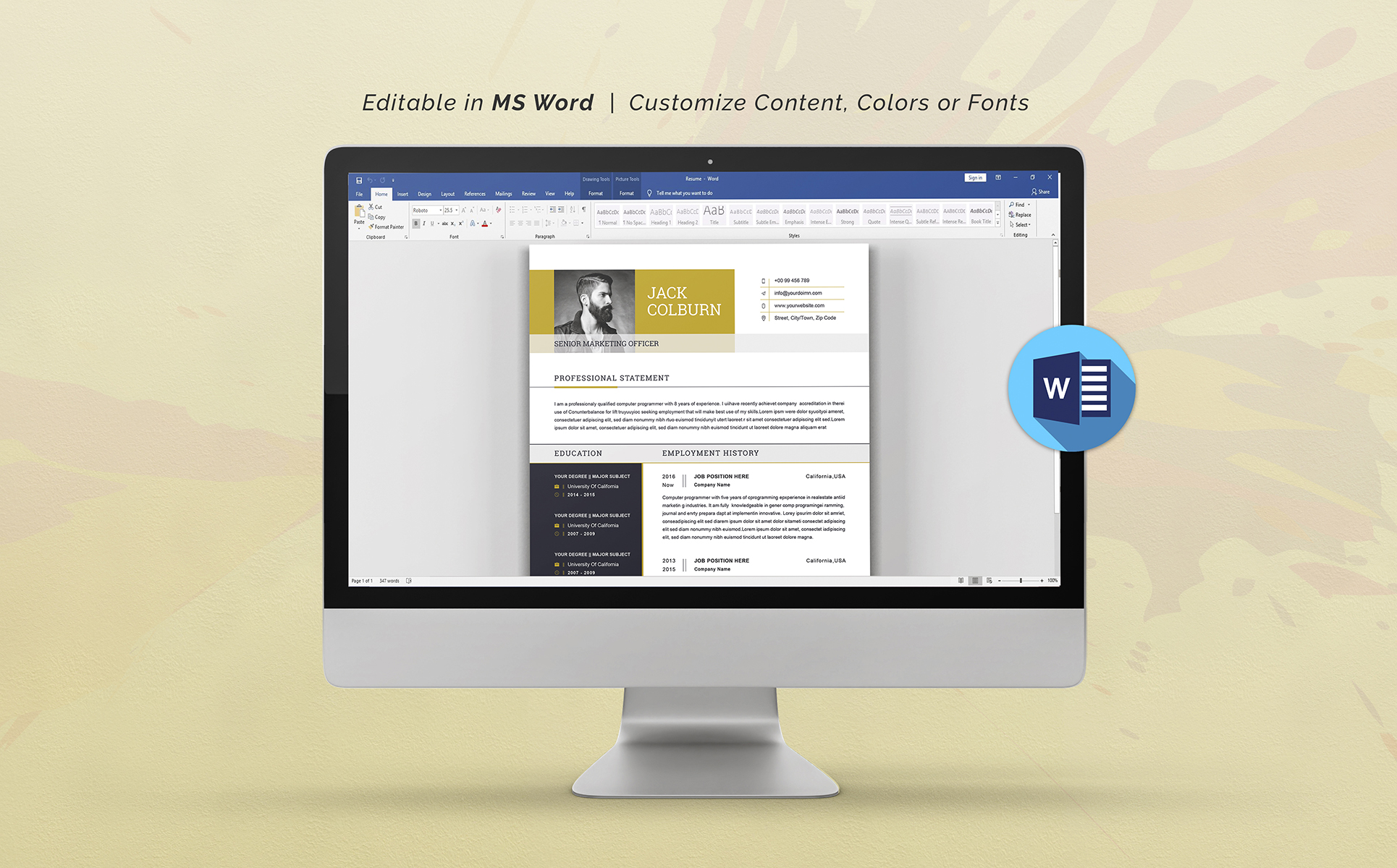 - You need at least MS Word 2007 or newer version on a desktop computer to customize this template.
