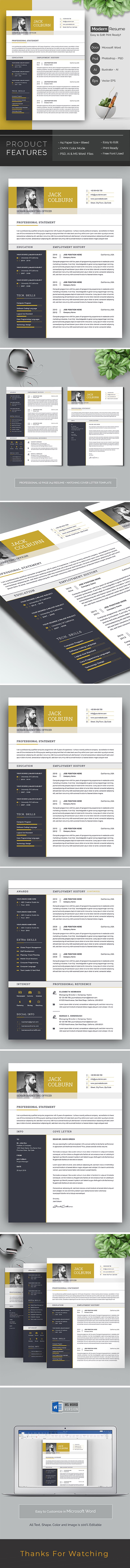 Modern Resume Template Canva & MS Word For Marketing Resume