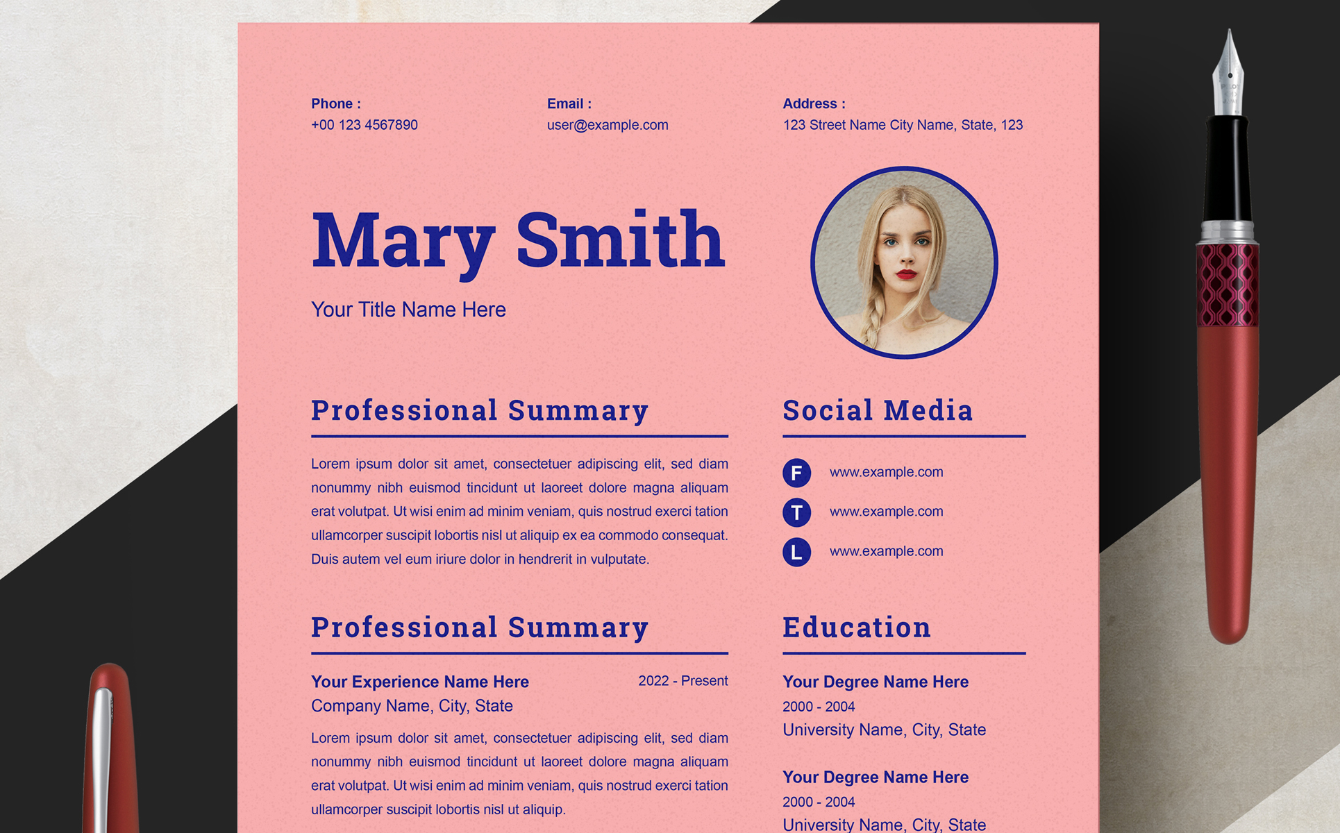 We make every piece of our resume design, such as text, color, photos, design spaces and other related topics, to ensure that you will be selected for a job interview and we also hope that if you use our resume design you must be selected for your expected Job employment.