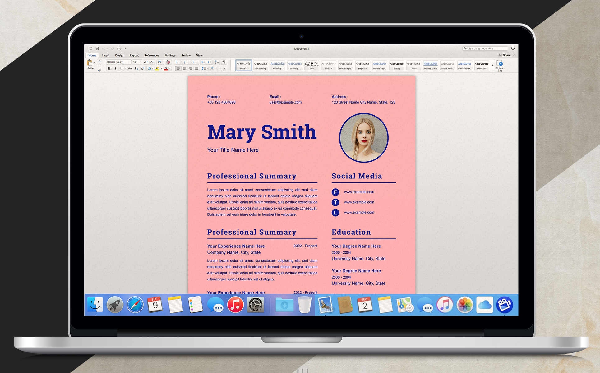 - Open the template in **Word, Pages, Photoshop, or Illustrator** and replace my "dummy" text with your resume content