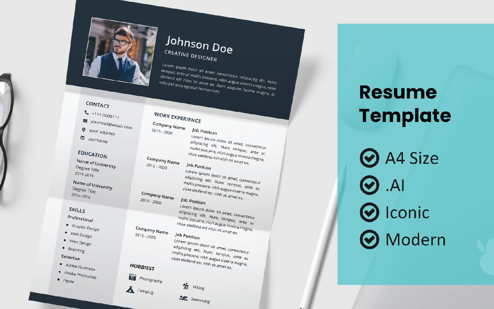 The first impression before you go to a new job is very urgent, you can trust this template for help you looking professional . This template easy editing with adobe illustrator.