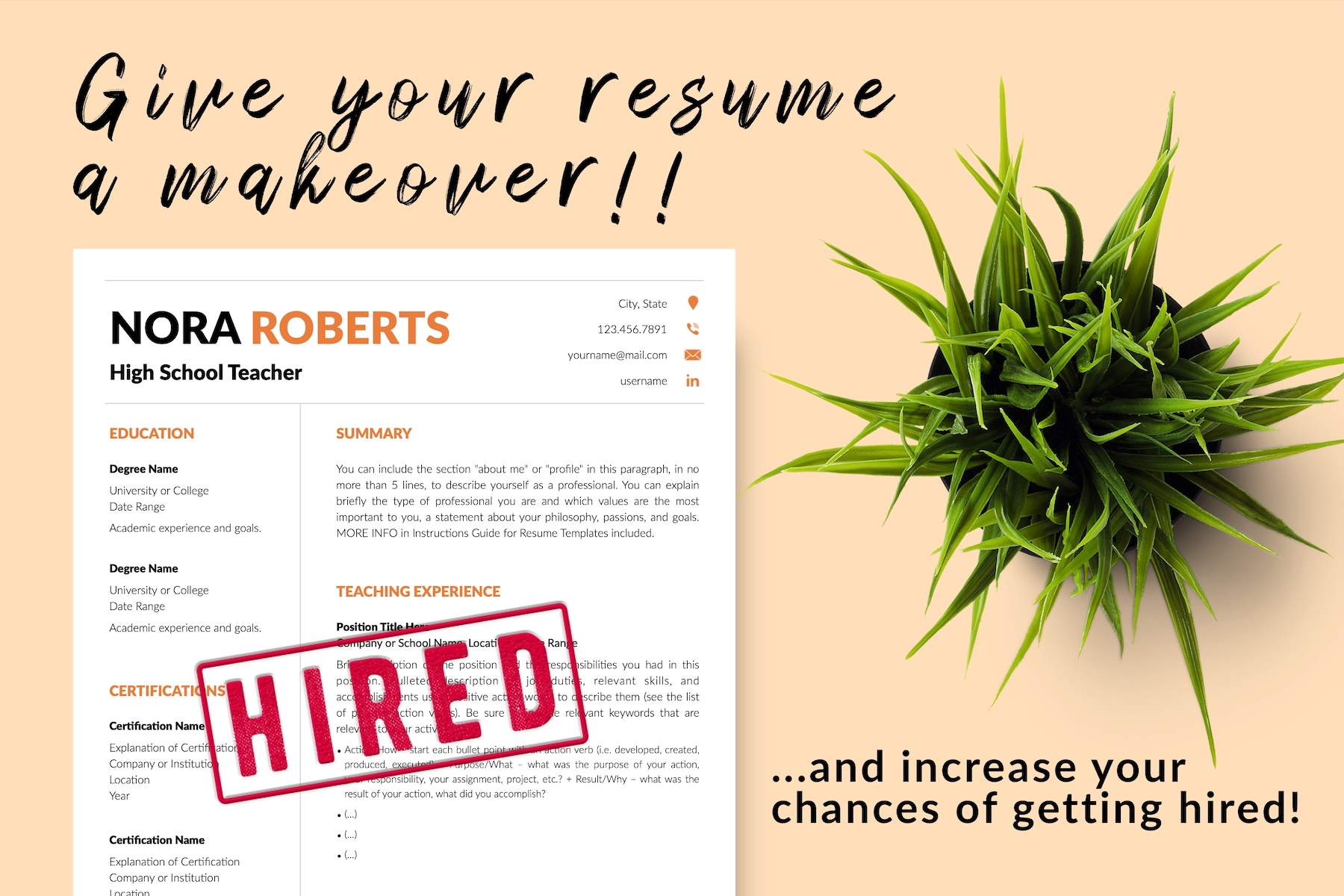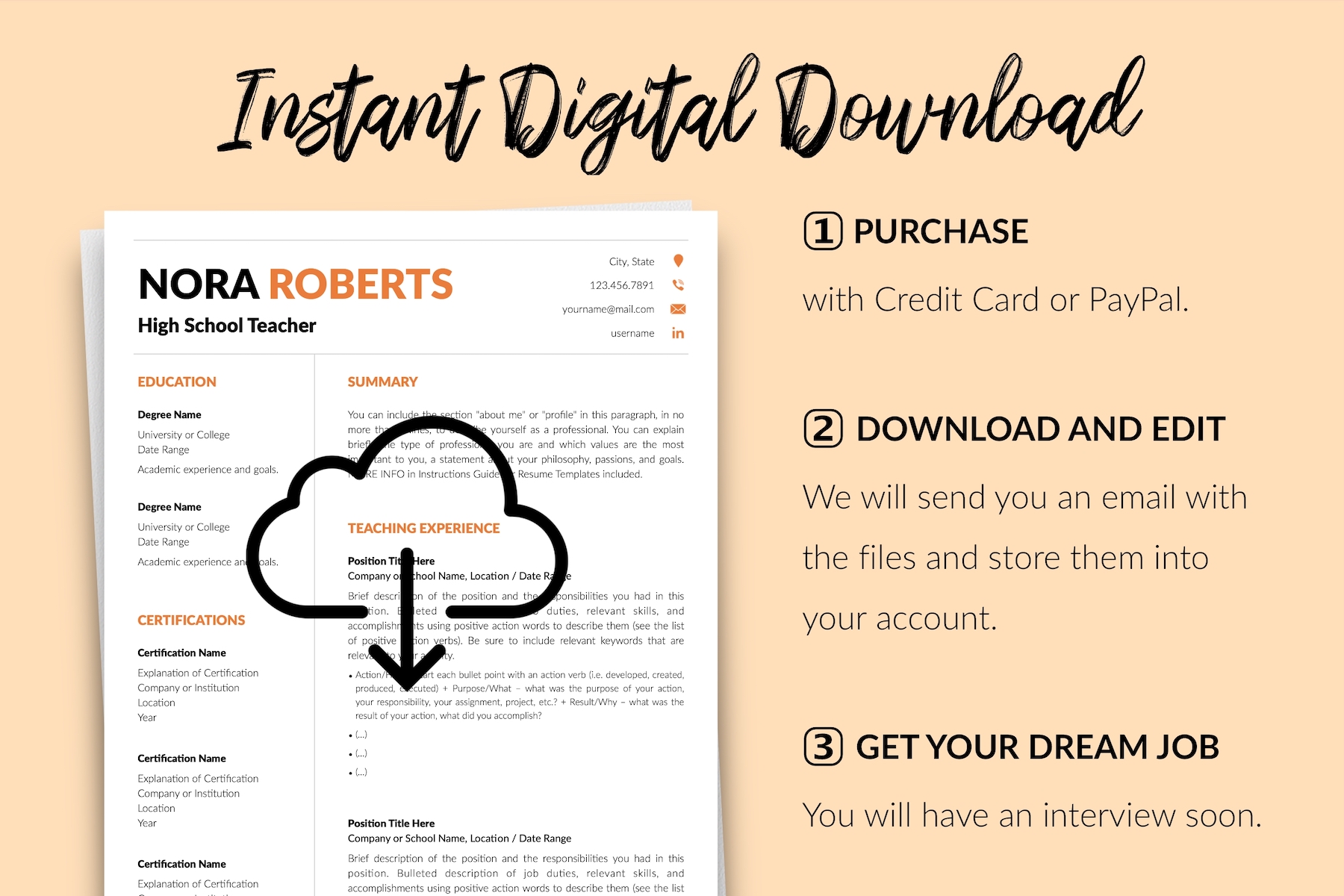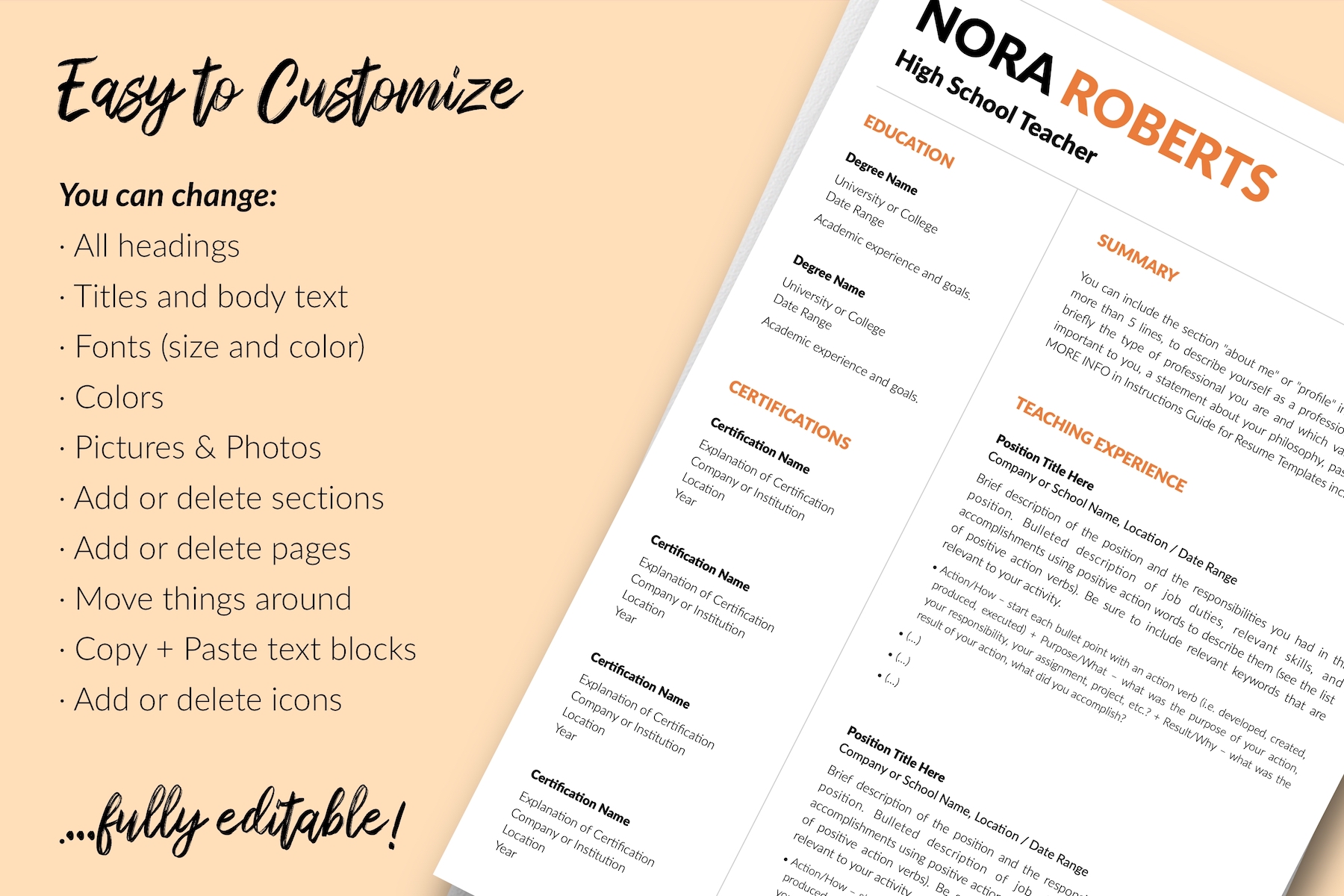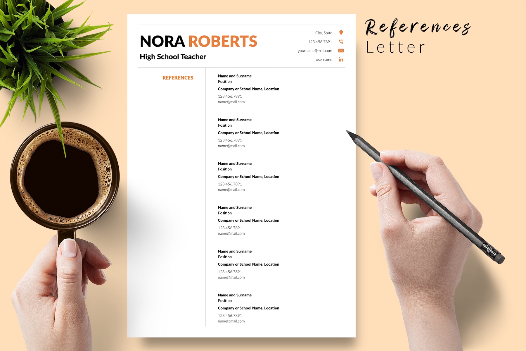 Nora Roberts - Teacher CV Resume Template with Cover Letter for Microsoft Word & iWork Pages