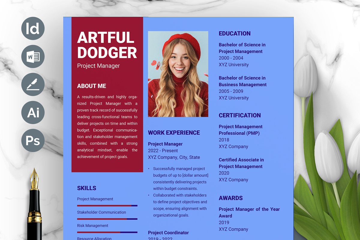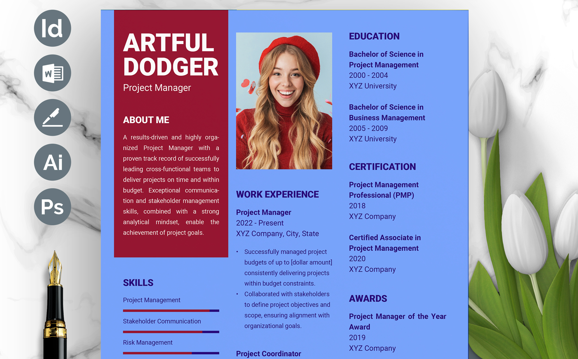 - Open the template in **Word, Pages, Photoshop, or Illustrator** and replace my "dummy" text with your resume content