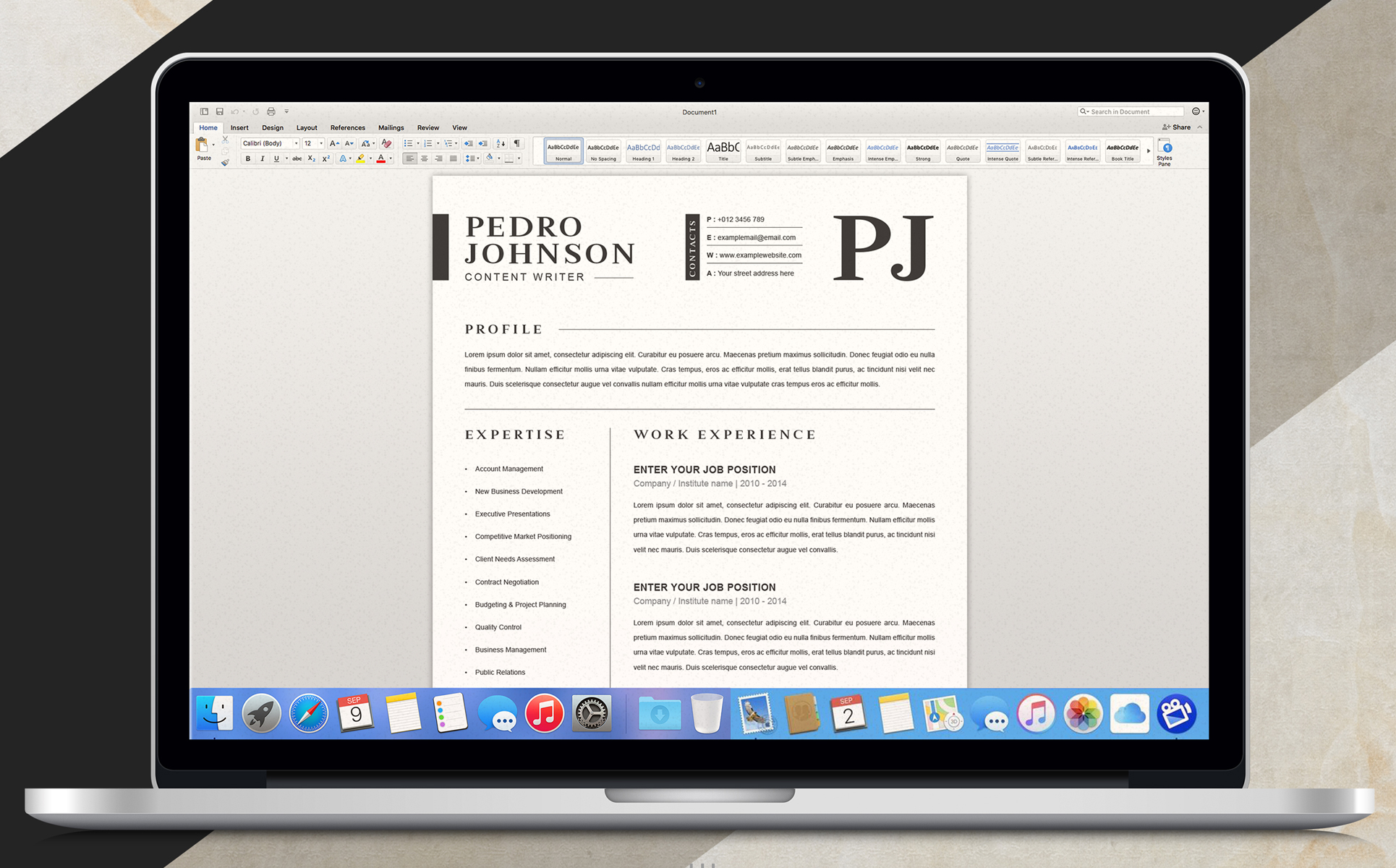 - Open the template in **Word, Pages, Photoshop, or Illustrator** and replace my "dummy" text with your resume content