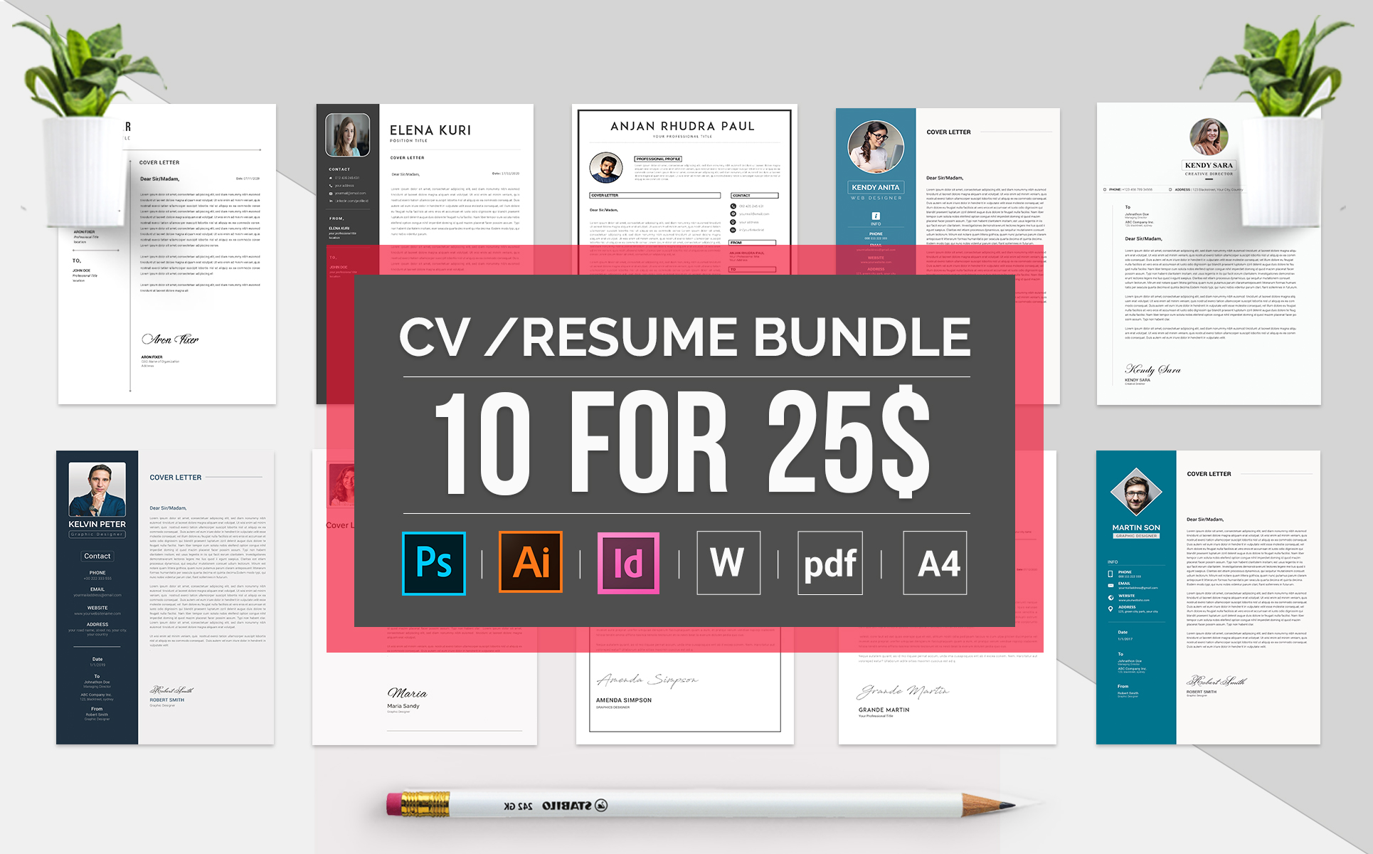 This HUGE CV / Resume bundle includes 10 TOP SELLING RESUME DESIGNS with Cover Letter!