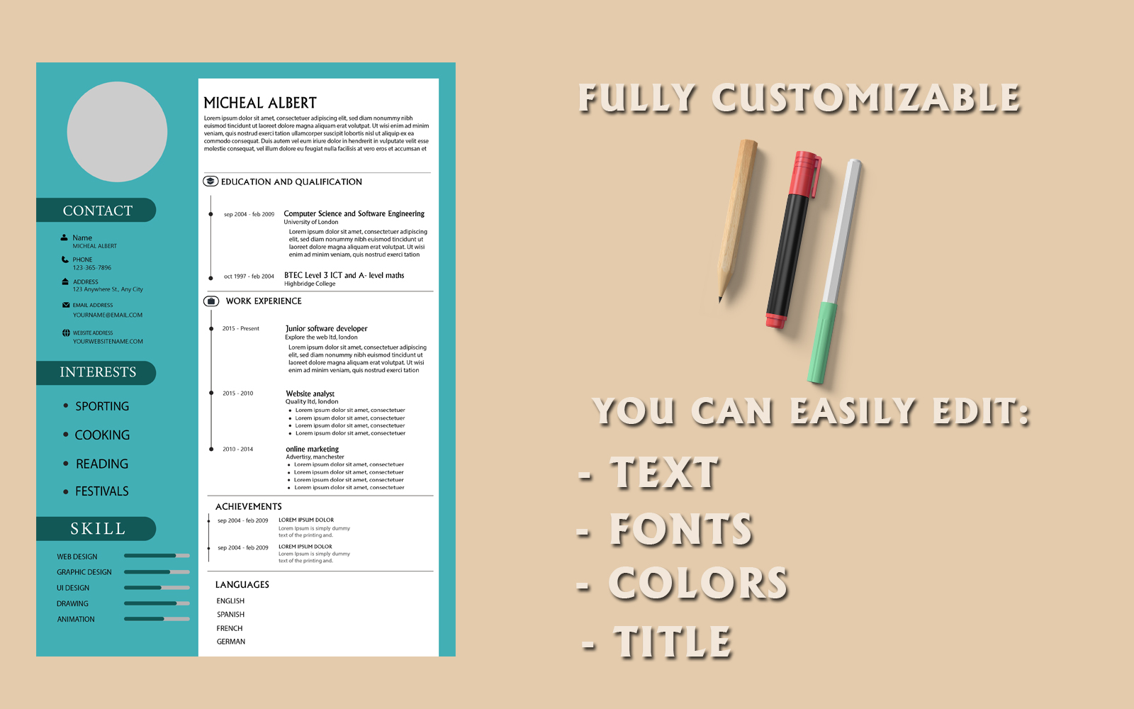 It is very easy to customize. You can duplicate anything, move units or delete anything you do not need. You can also change colors and fonts and make your resume unique.
