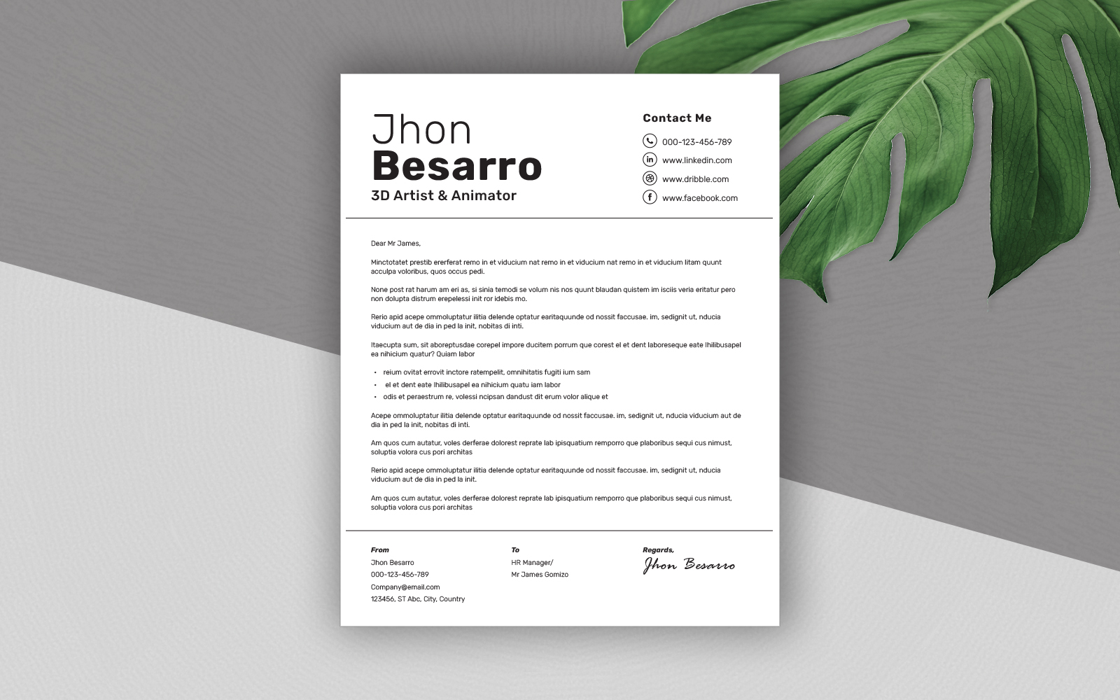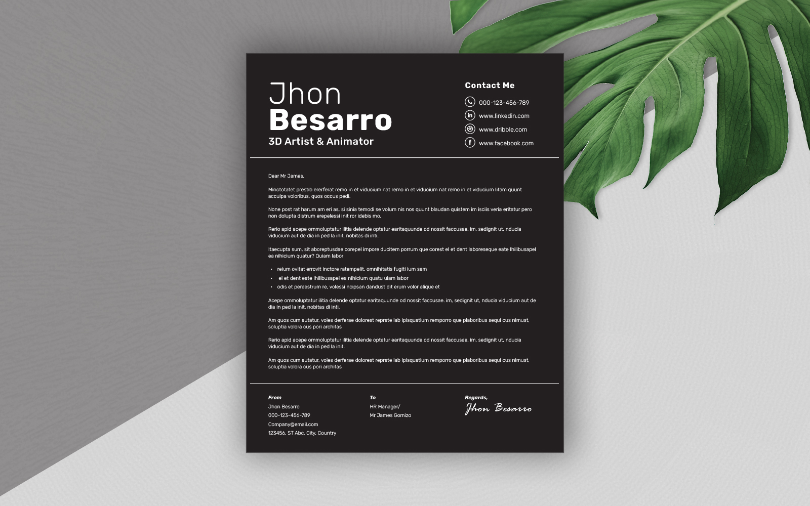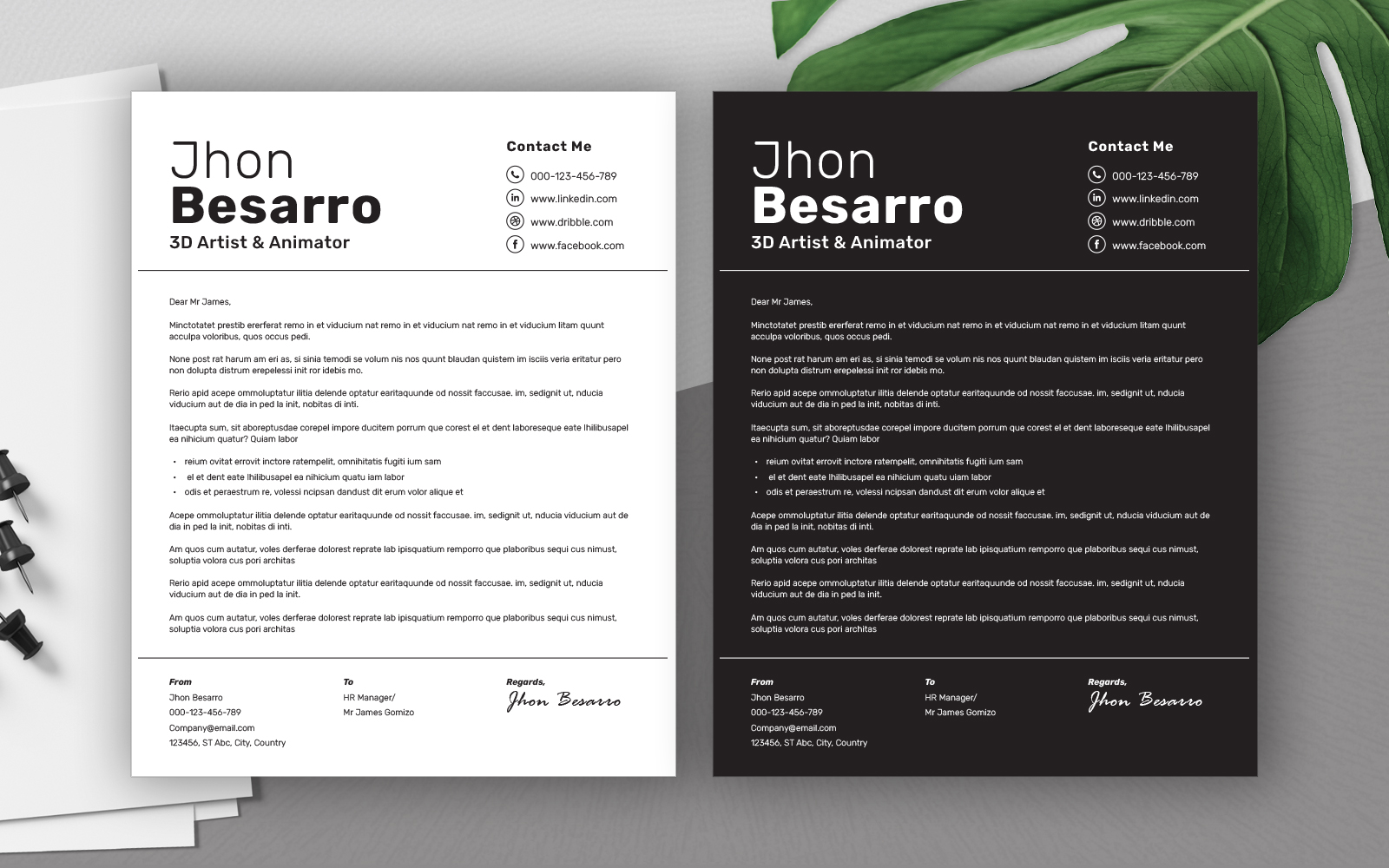 Professional Resume & Cover Letter Light and Dark (Letter Size)