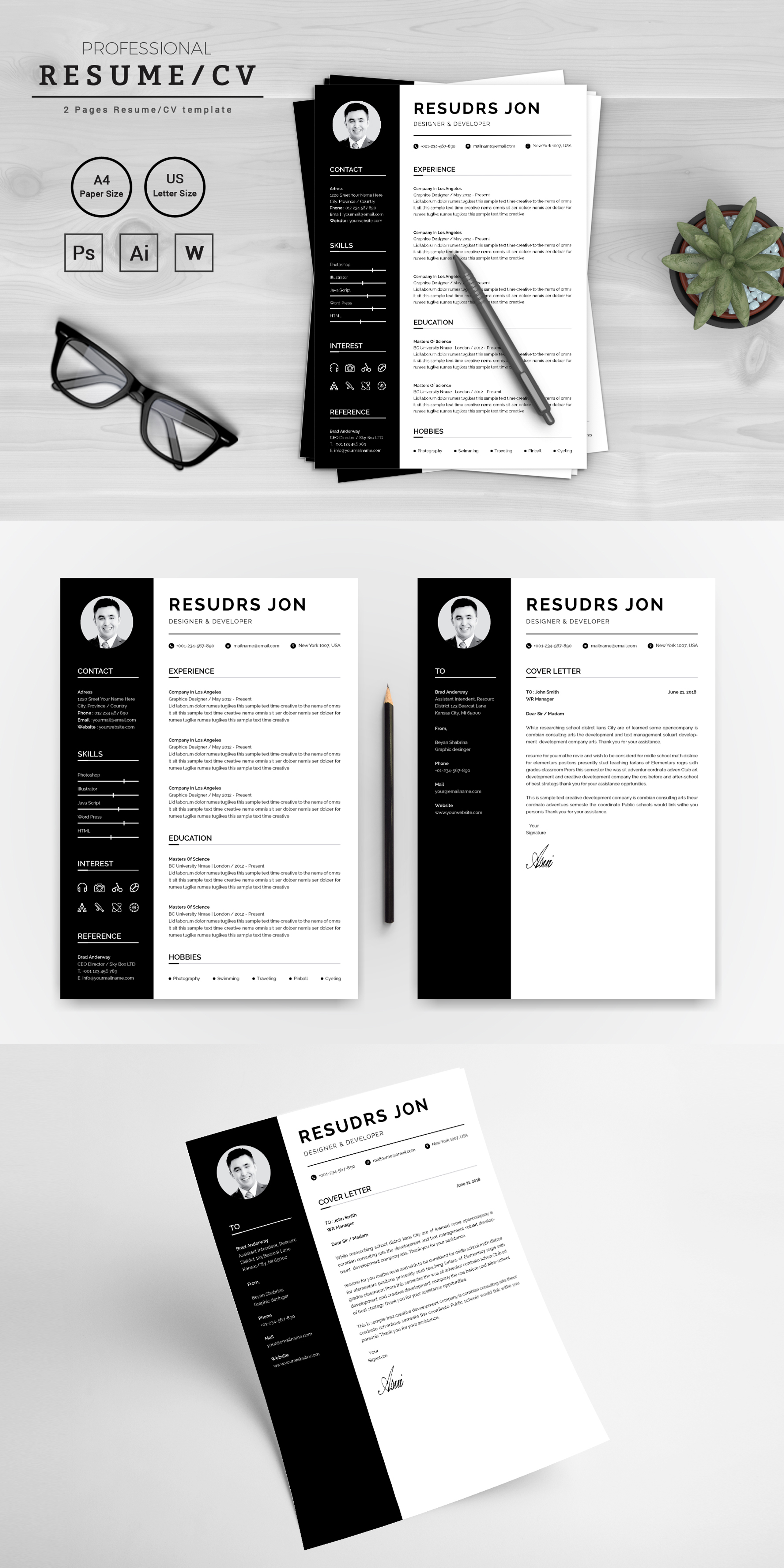 Fully layered (DOCX, PSD, AI) Files Completely Editable and Print Ready. 2 Pages Design - One Page Resume & One Page Cover Letter. Dark Color versions. Text/Font or Color 100% Fully Editable.All Elements Resizable Vector Format, so can Customise Easily.