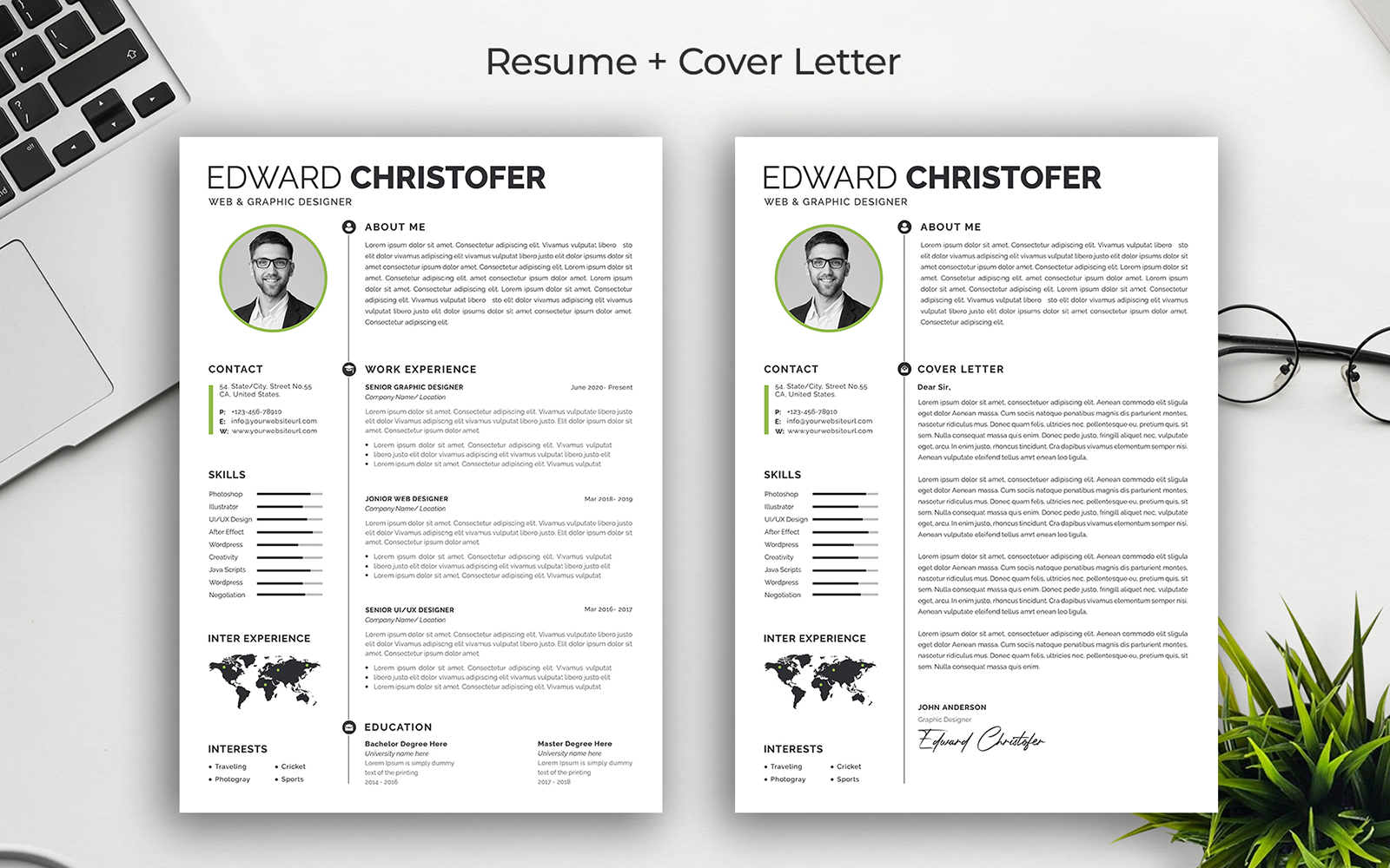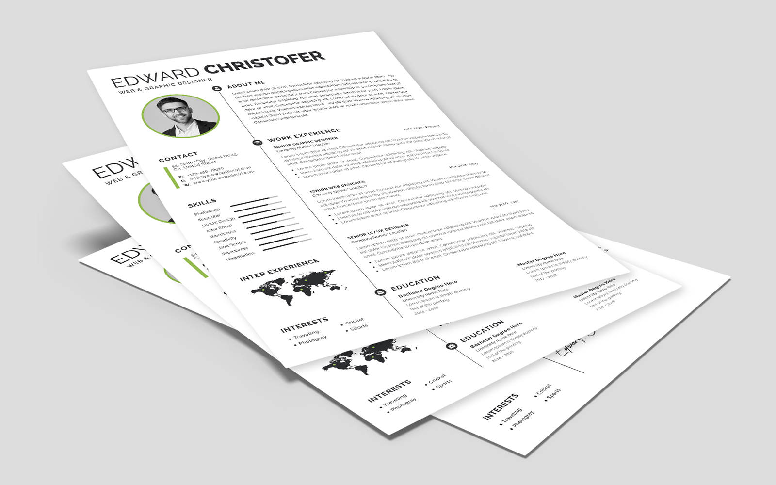 A clean, modern resume template is designed to help you get that great job. All main elements are editable and customizable. You can change images with the smart object.