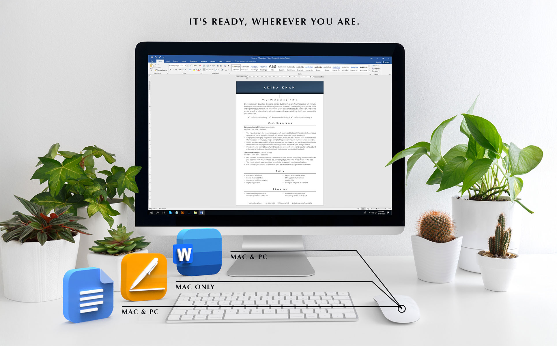 This Curriculum Vitae Template is designed to work seamlessly with Word 2016 or higher (Desktop Edition only), Mac Pages, and Google Docs. It’s formatted for A4 and US Letter sizes. Craft your standout job application with our Resume Template bundle and unlock the doors to your dream job today!