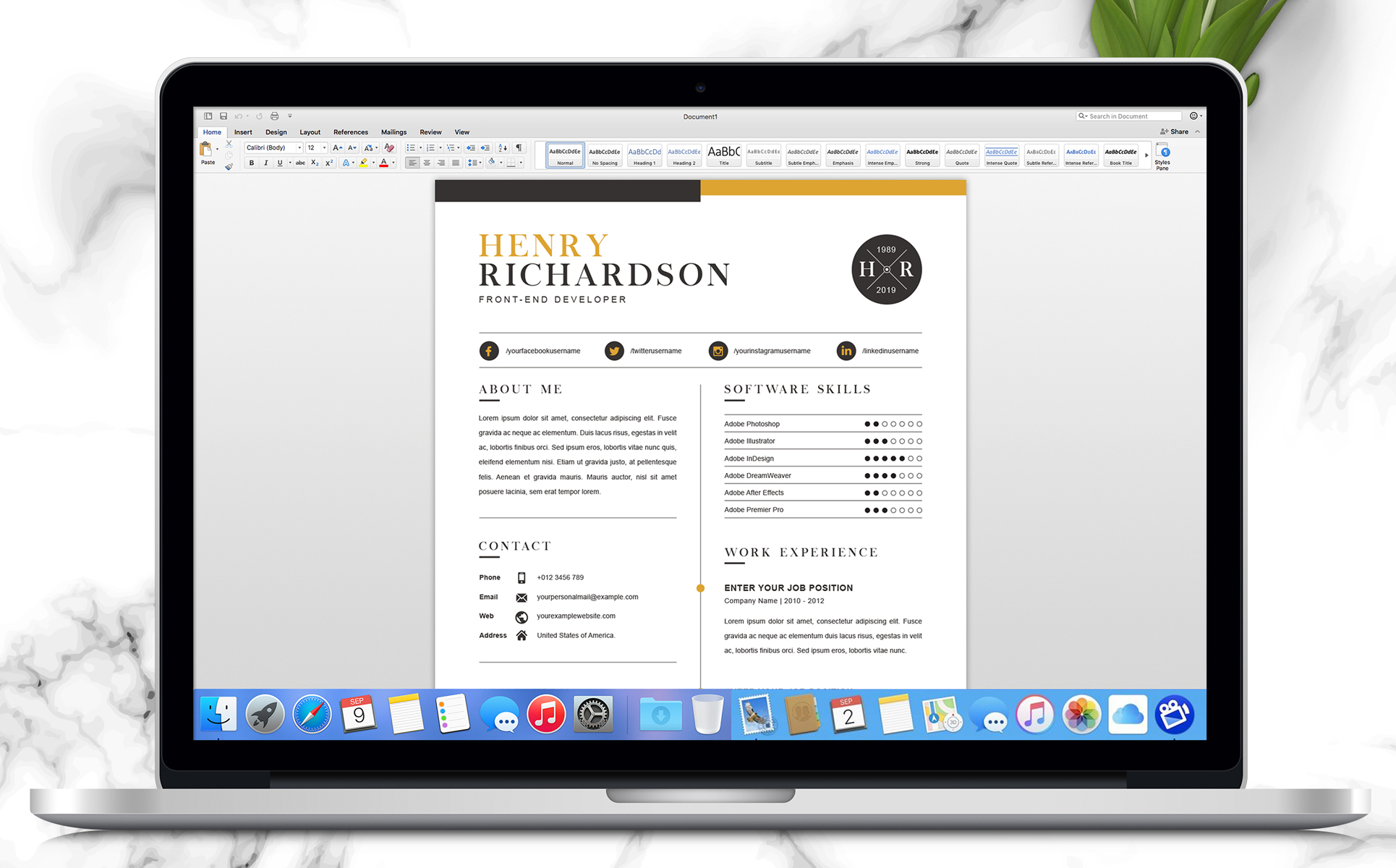 - Open the template in **Word, Pages, Photoshop, or Illustrator** and replace my "dummy" text with your resume content