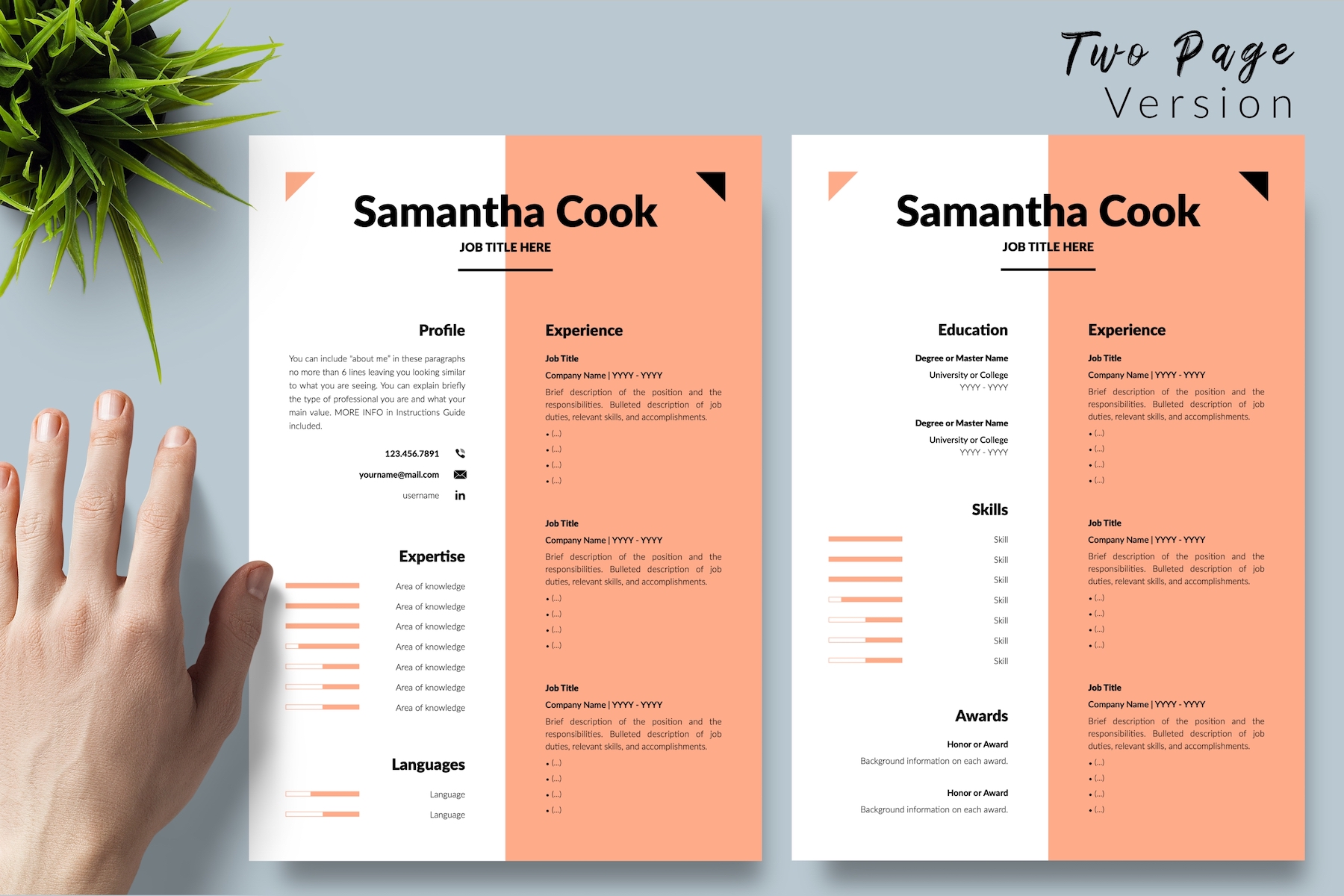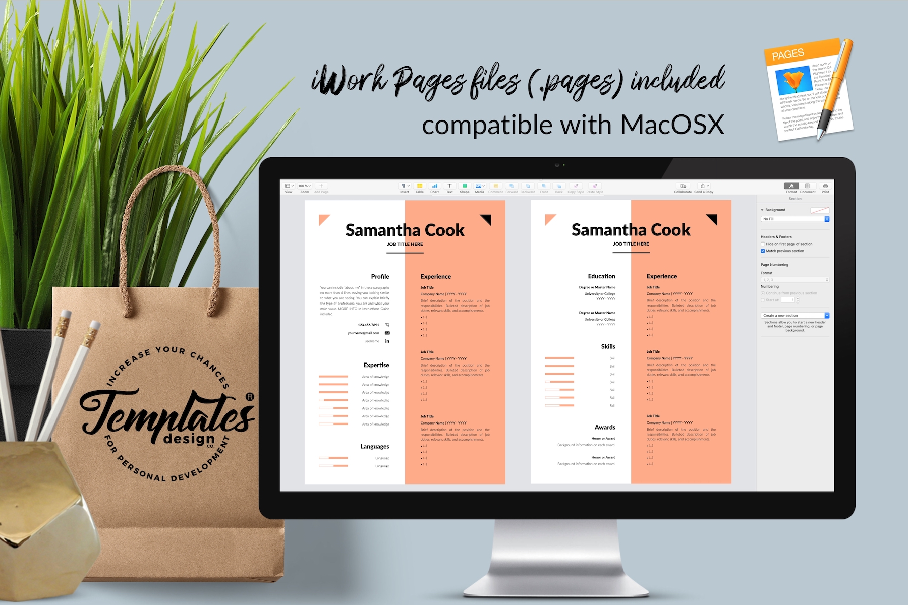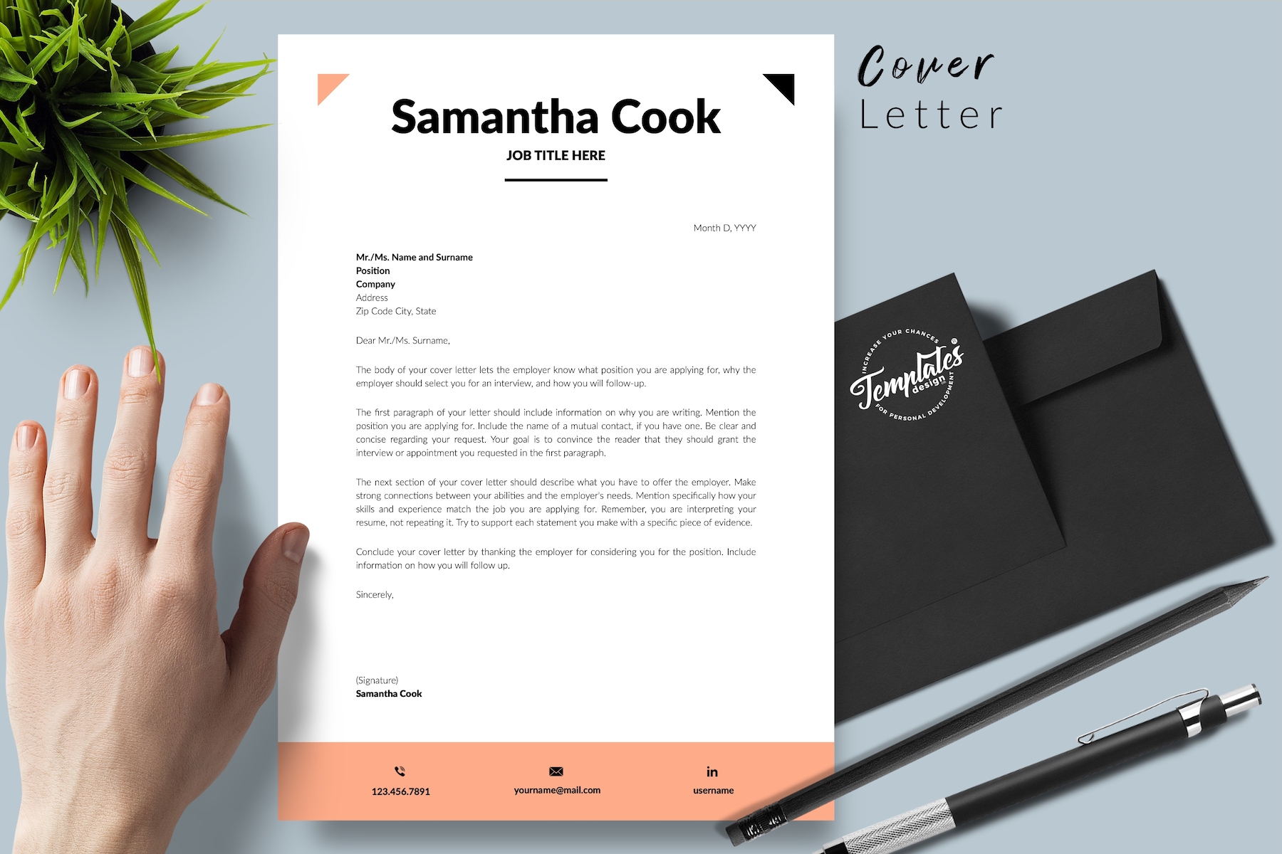 Samantha Cook - Modern CV Resume Template with Cover Letter for Microsoft Word & iWork Pages