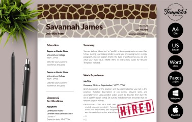 Savannah James - Zookeeper Resume Template with Cover Letter for Microsoft Word & iWork Pages