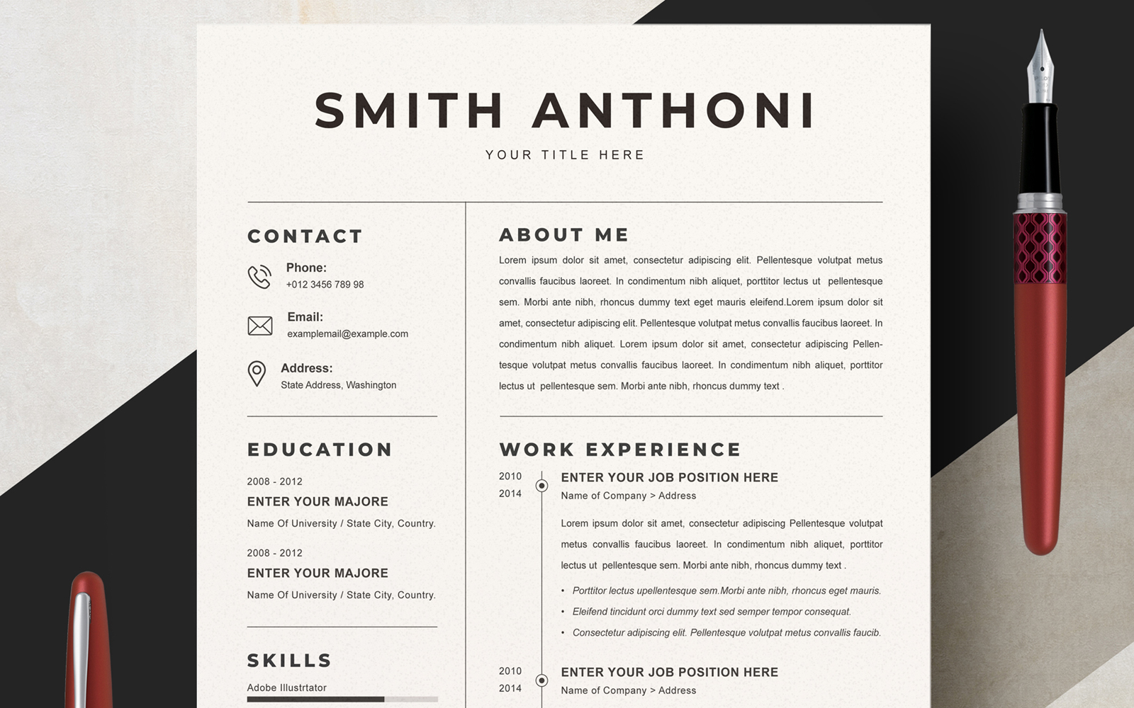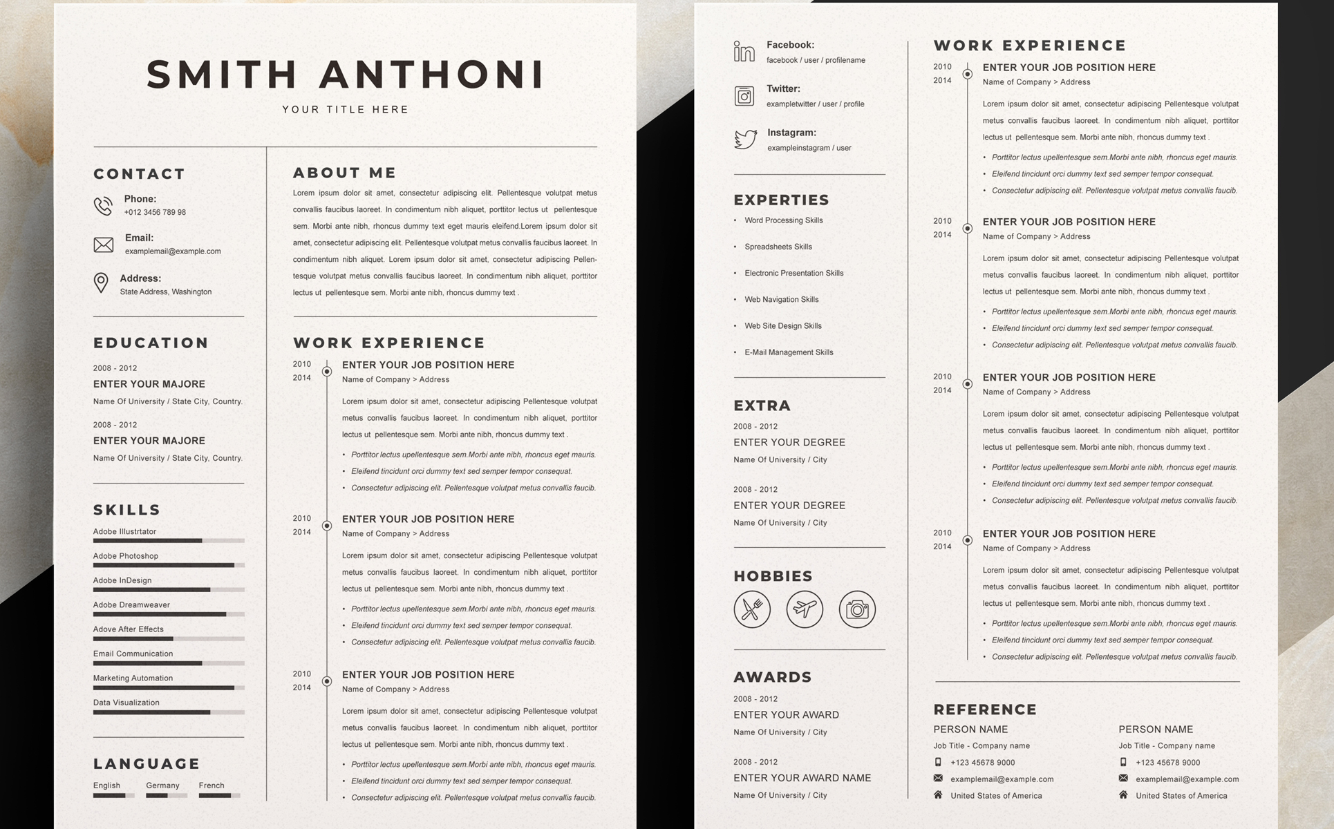 - Open the template in **Word, Pages, Photoshop, or Illustrator** and replace my "dummy" text with your resume content