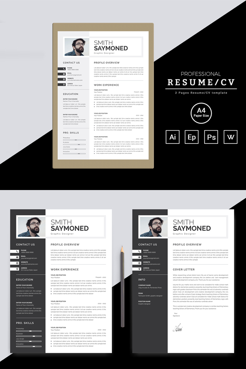 Looking for something that will distinguish you from the competition? resume/CV & Professional Resume Template will fully serve your needs. it has a coherent structure, that will ensure fluent perception. In addition, you will be able to customize its look up to your personal taste and switch between 3 color variants. Need to change the format of your resume? Play around with the design, structure, typography of this template in AI, EPS, PSD and DOCX Files. By the way, only free Google fonts were used in the production of this theme. No need to worry about a physical copy of your CV, because this theme is fully-optimized for printing and comes in a standard, A4 size. Specifically for those cases when a resume is not enough, this item is equipped with a cover letter bonus, so you will be able to provide all the necessary information for the resume/CV Template is your must-have for an eye-pleasing presentation of your candidacy.