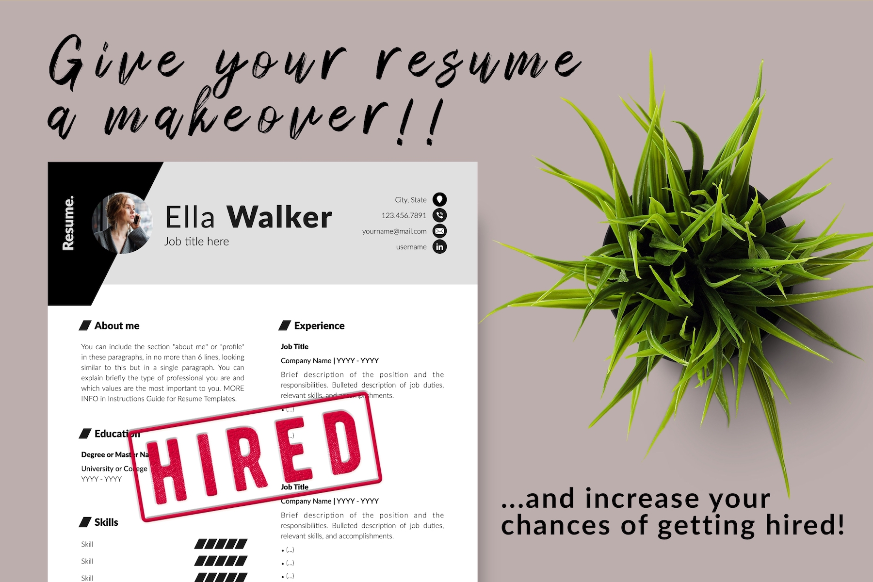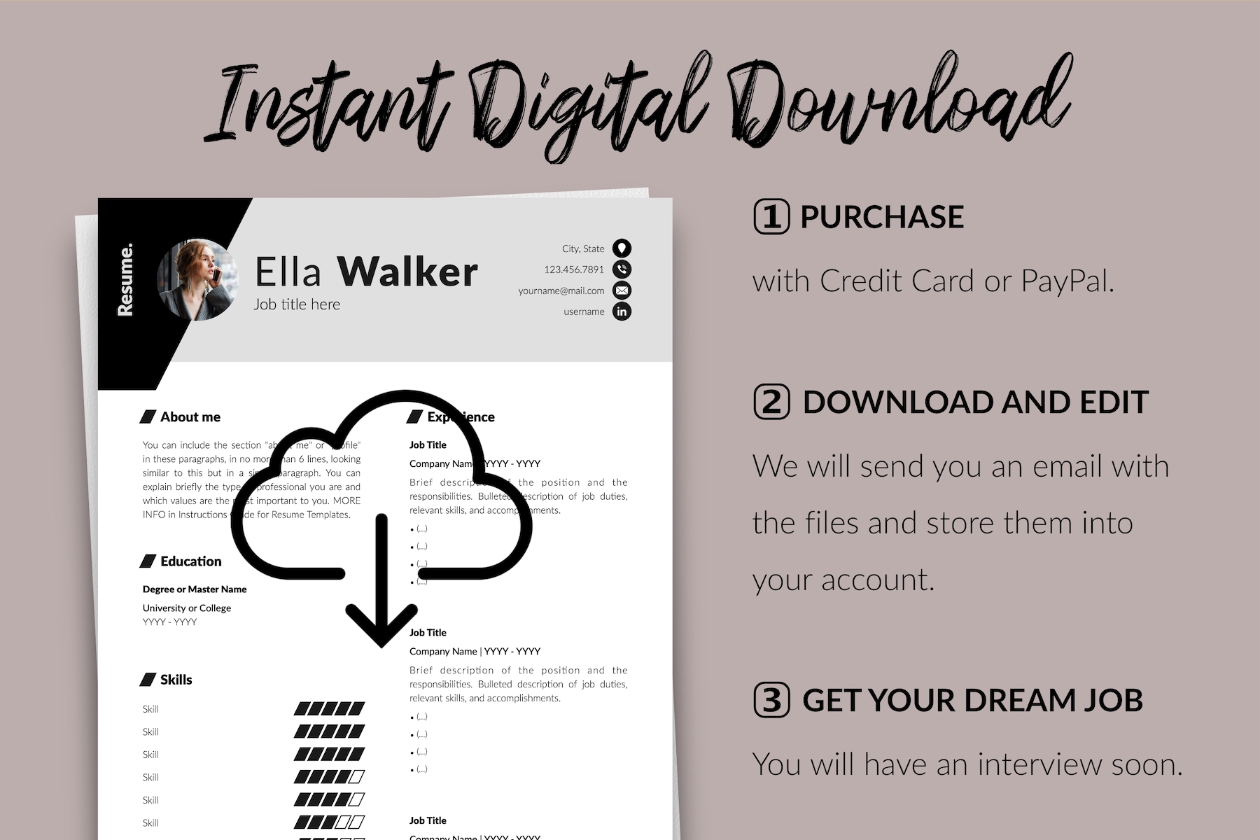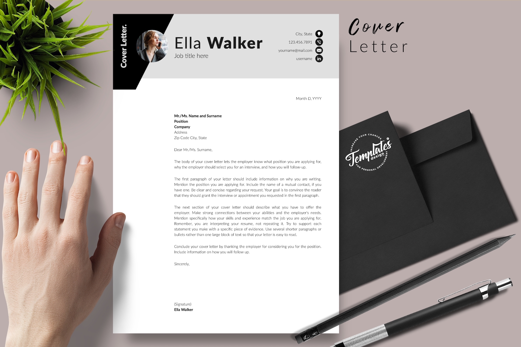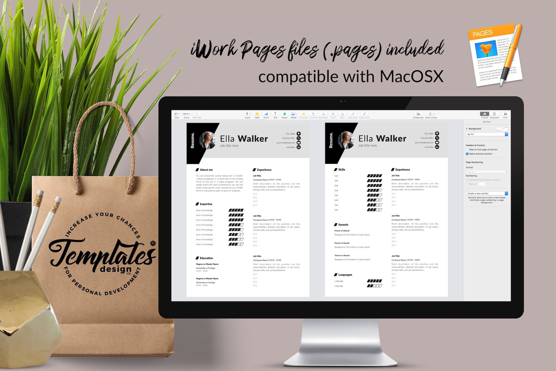 Ella Walker - Creative Resume Template with Cover Letter for Microsoft Word & iWork Pages