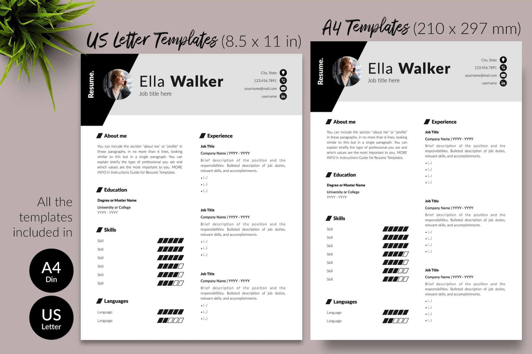 - Size of the templates included: US Letter (8.5 x 11 in) + A4 (210 x 297 mm).