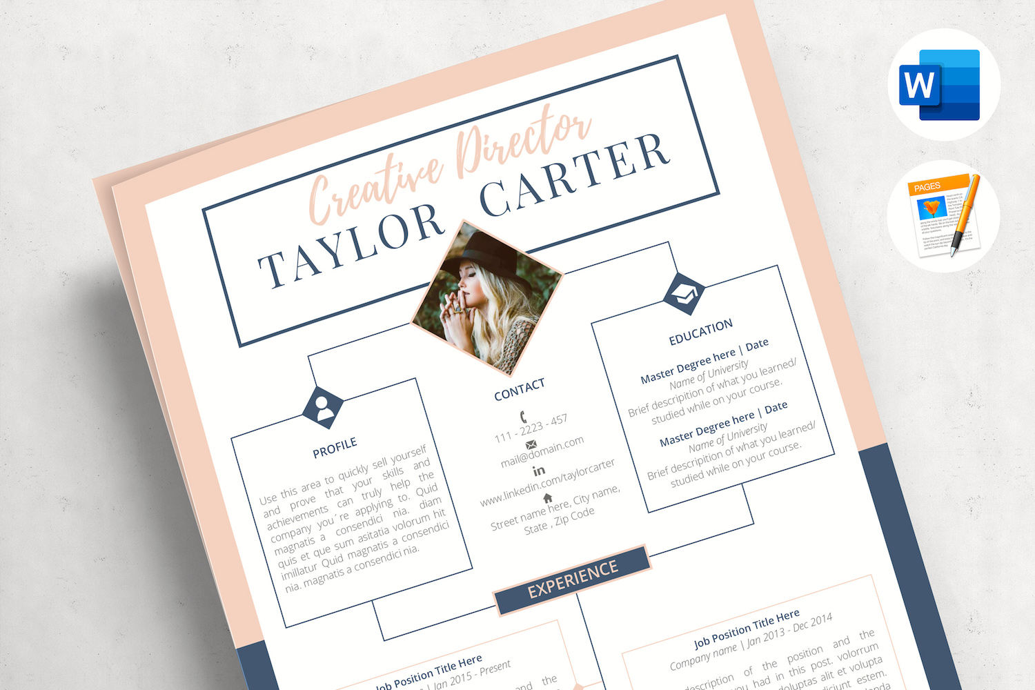 TAYLOR - Creative Curriculum Vitae. Fantastic and Modern CV, Cover Letter Format and References