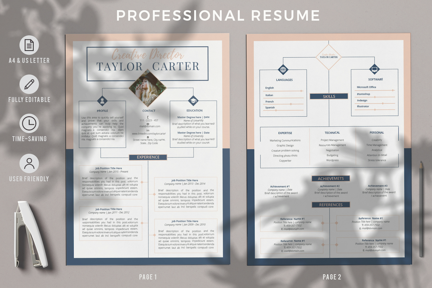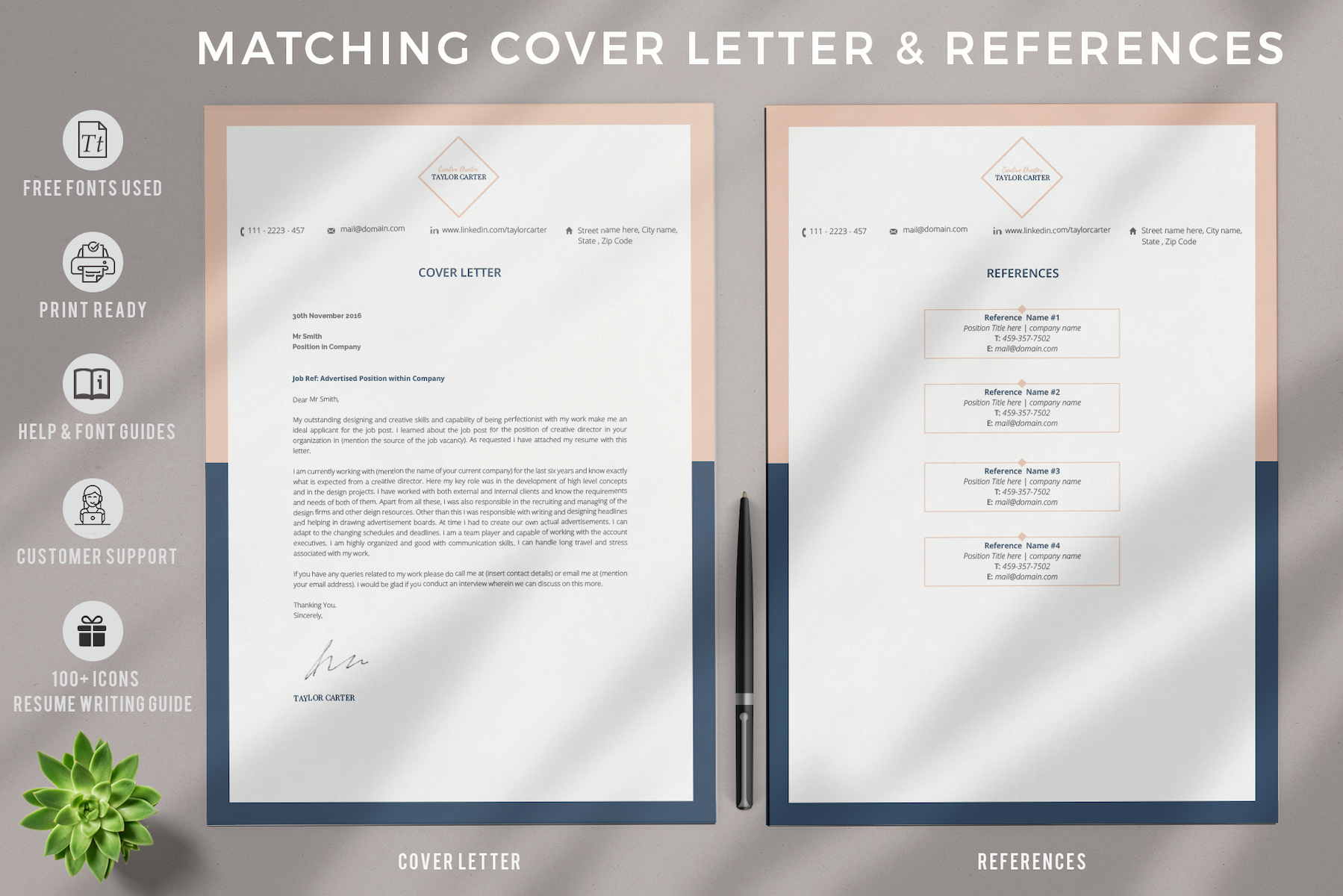 TAYLOR - Creative Curriculum Vitae. Fantastic and Modern CV, Cover Letter Format and References Resume Template