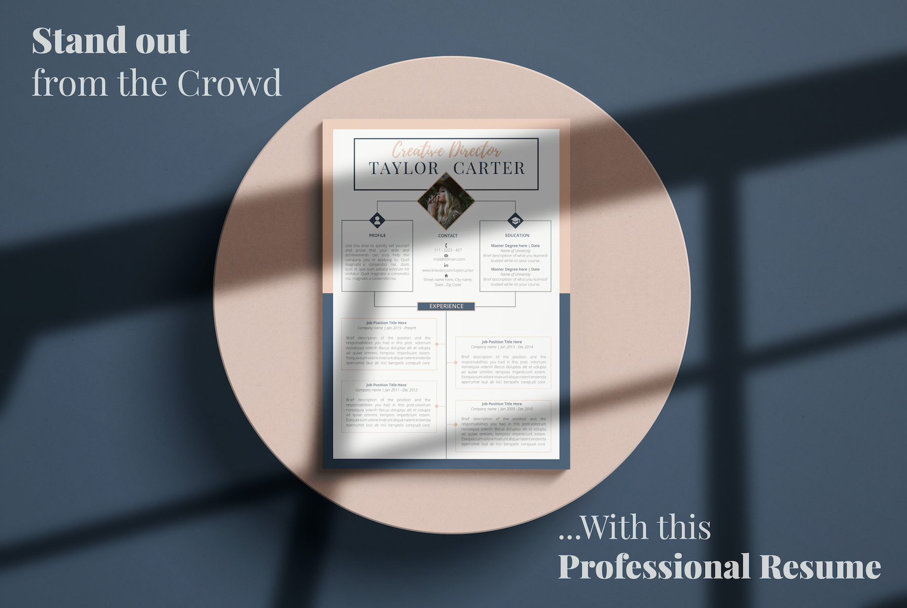Stand out from the crowd with this modern and creative resume template design. It is also a great design for current students looking for side jobs or new graduates or anyone in the Creative field.