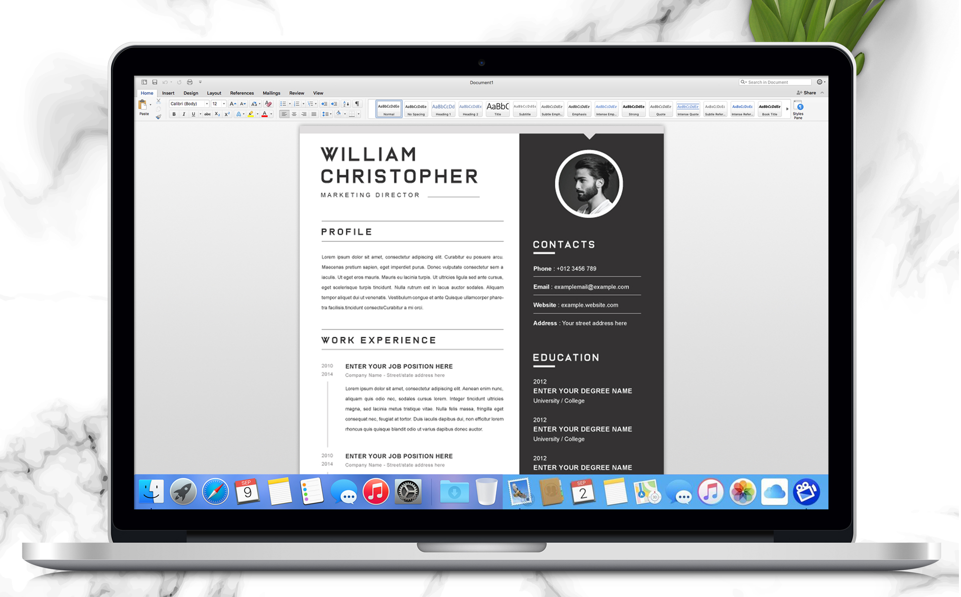 - Open the template in **Word, Pages, Photoshop, or Illustrator** and replace my "dummy" text with your resume content
