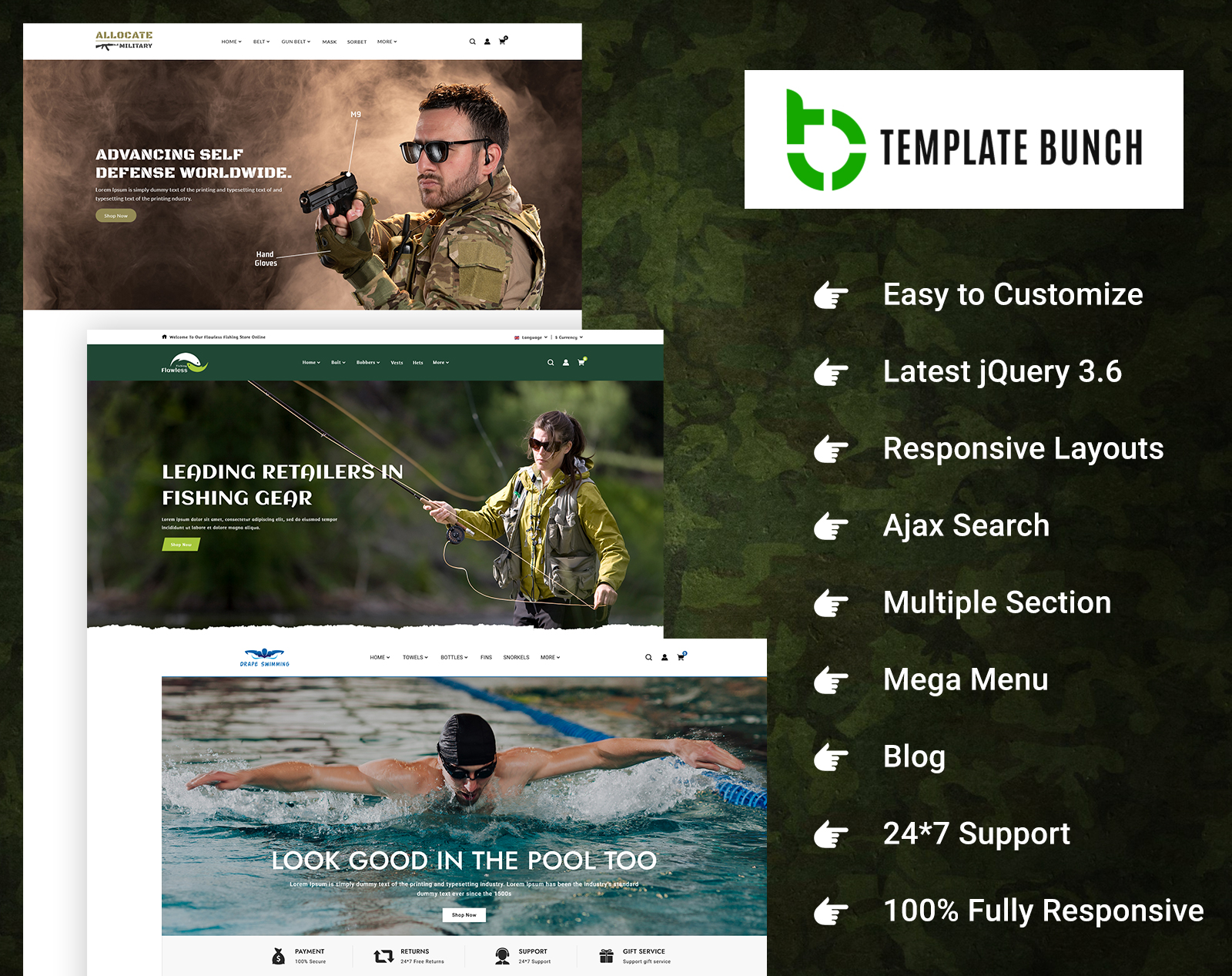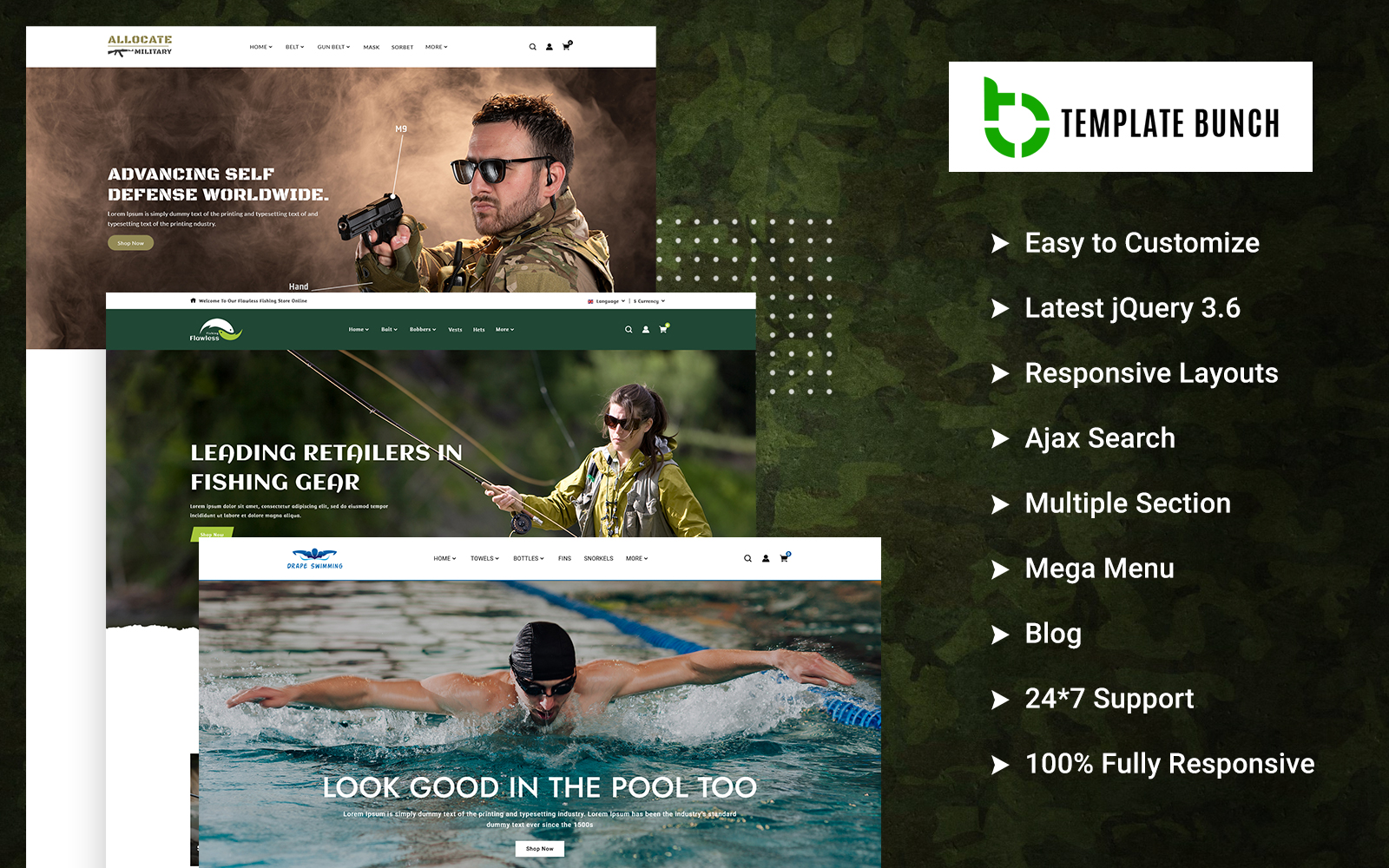 Allocate - Military and Fishing with Swimming E-commerce Template. Effortlessly customize your site’s look and functionality using the live customizer, powered by the versatile Redux framework. Set up your site in minutes by importing demo content with a single click, making the setup process quick and easy. Enjoy extensive customization options, allowing you to create a site that perfectly matches your brand's needs and style. Facilitate smooth and efficient communication with your customers using the functional Ajax-powered contact form. Designed with user-friendliness in mind, this template is easy to customize, even for those with limited technical skills. Boasting a sleek and modern design, Allocate ensures a clean and professional appearance. All files are thoroughly commented, making customization straightforward and hassle-free.