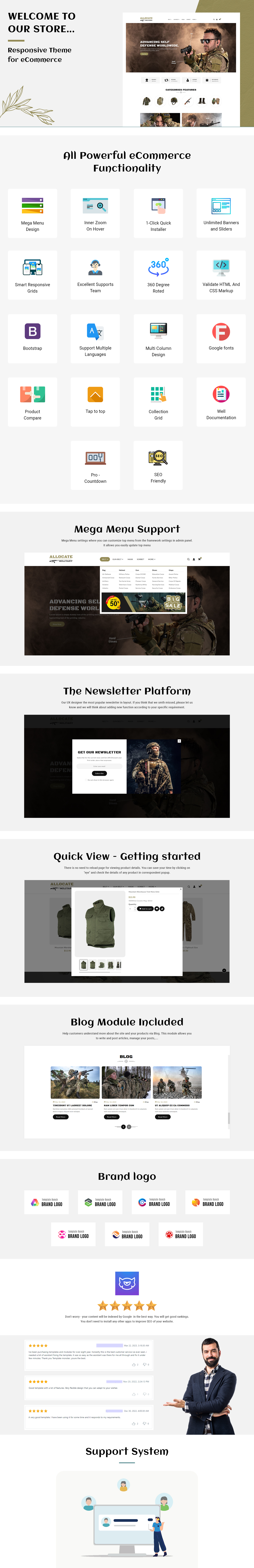 Allocate - Military and Fishing with Swiming - Responsive Shopify Theme for eCommerce - Description