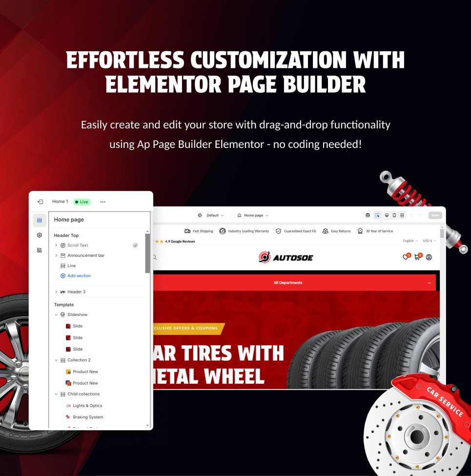 Ap Autosoe – Car and Auto Parts Shopify Theme is engineered for performance, precision, and a bold online presence. Designed specifically for auto part retailers, car accessory shops, and vehicle service providers, this theme brings the power of your inventory to the forefront with style and speed.