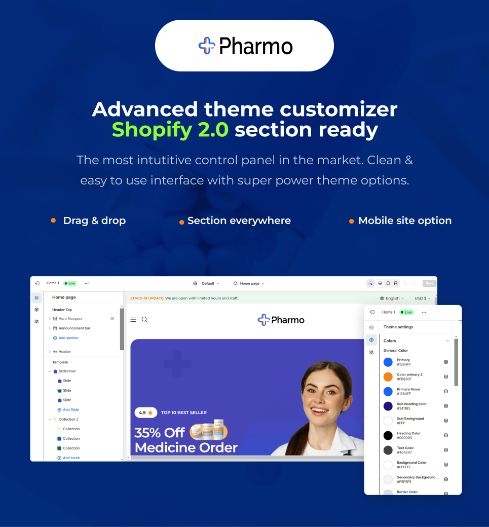 Ap Pharmo is a newly released Shopify theme crafted for medical and health-focused online stores. With 04+ modern and professionally designed homepage layouts, this theme is perfect for a range of businesses including medical stores, pharmacies, drug shops, COVID-related supplies, medical equipment, hospital and clinic websites, dental supply stores, wellness and health centers, vitamin and supplement shops, and organic health product sites.