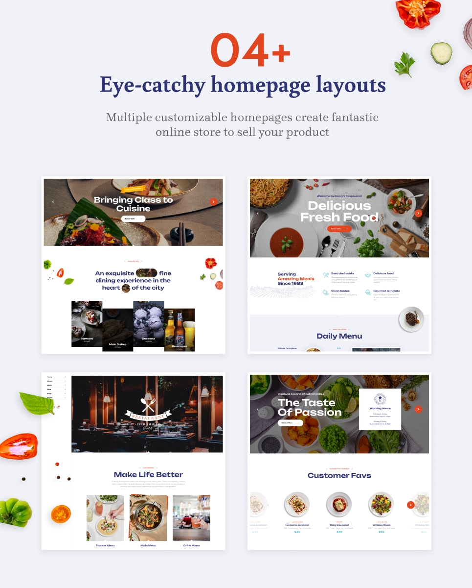 Tailored for a diverse range of online ventures including food stores, restaurants, coffee shops, and more, this theme exudes versatility and elegance.