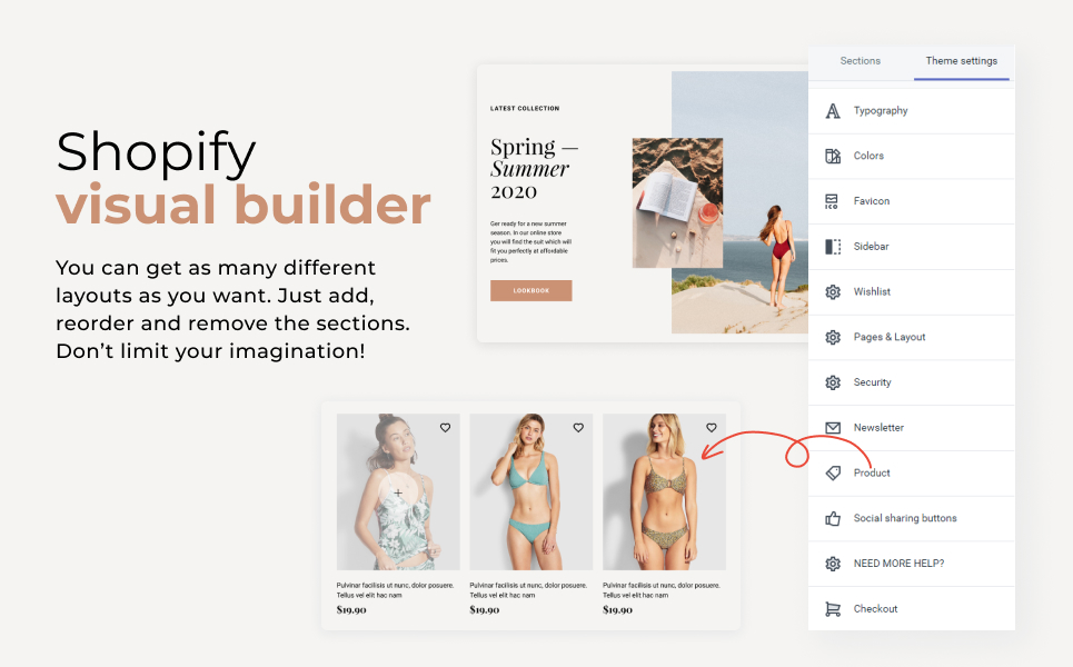 This minimal and mobile-ready swimwear online store Shopify theme is a part of the Apparelix family and can be ideal for creating swimsuits, lingerie, swimming clothes, and accessories stores.