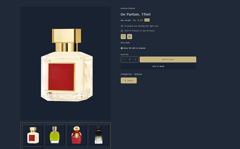 Looking for a premium Shopify theme to elevate your perfume, fragrance, and beauty store? Aroma is the perfect choice! Designed for perfume shops, beauty brands, skincare, and luxury cosmetic stores, this theme offers a sleek, modern, and fully responsive layout that enhances the shopping experience. This Shopify theme is designed with SEO best practices, mobile-first technology, and stunning visuals to ensure high conversions and top search rankings. Perfect for perfume brands, fragrance boutiques, skincare shops, luxury beauty stores, and online cosmetics retailers. Aroma combines luxury aesthetics with cutting-edge eCommerce functionality to create a high-converting Shopify store. Featuring clean code, optimized performance, and stunning product pages, this theme ensures a premium shopping experience.