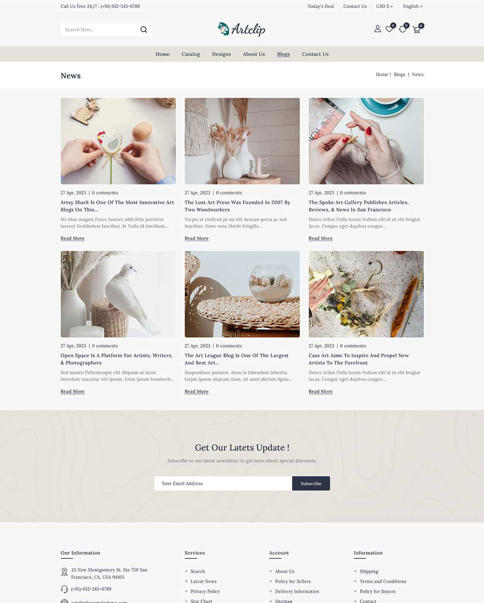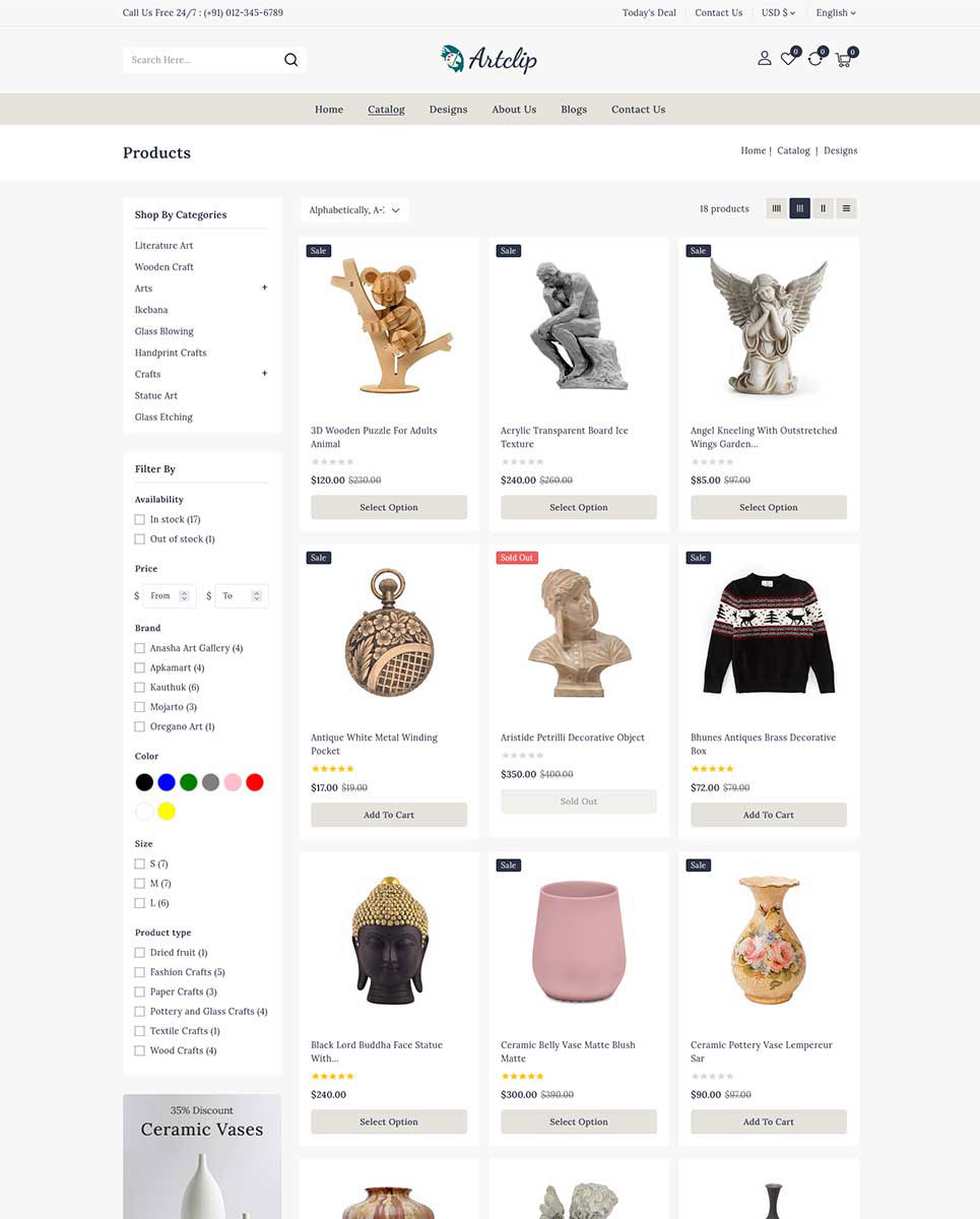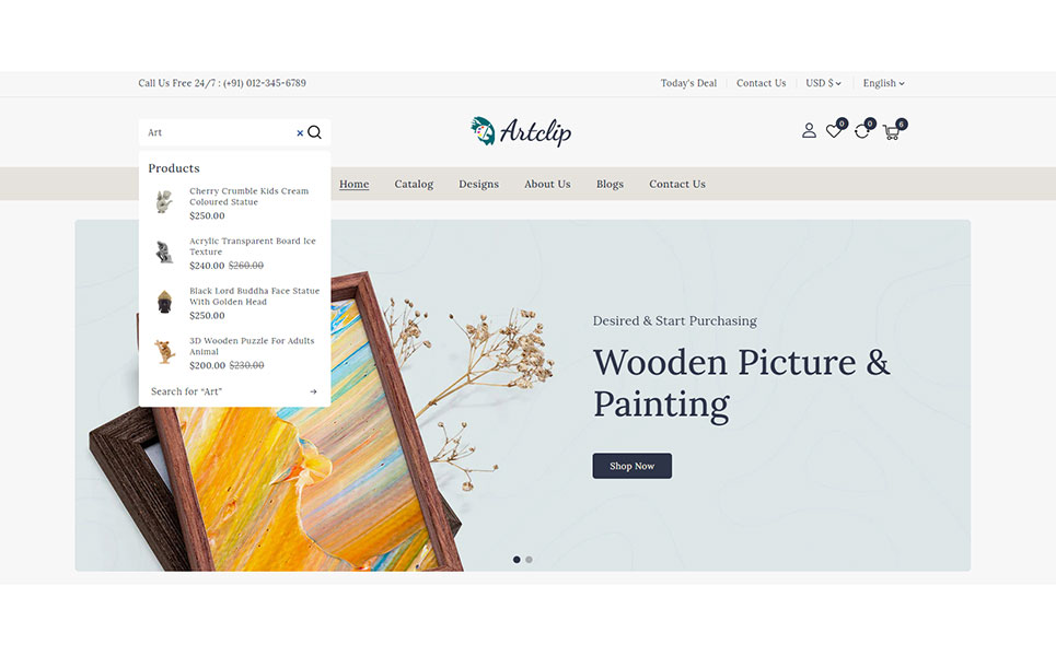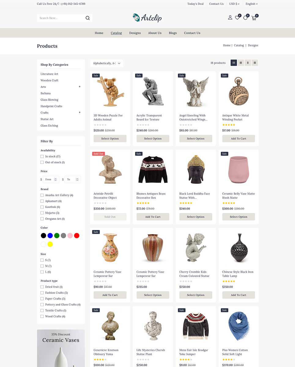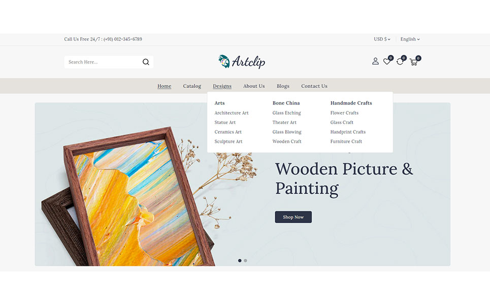 Artclip - Handmade Art Store Shopify 2.0 Responsive Theme Shopify Theme