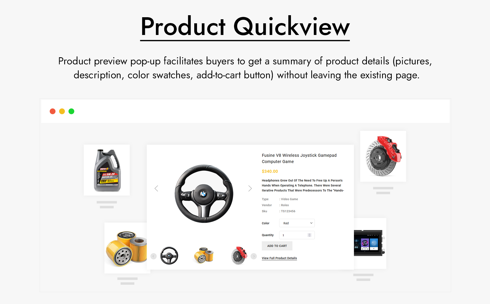 You will get all the listed features implemented on your online store with Premium Starter Kit for Shopify. If you do not like wasting time and paying monthly fees for APPs, you can get useful features on your site within 24-48 hours or less and only pay once. Listed above features are theme-specific.