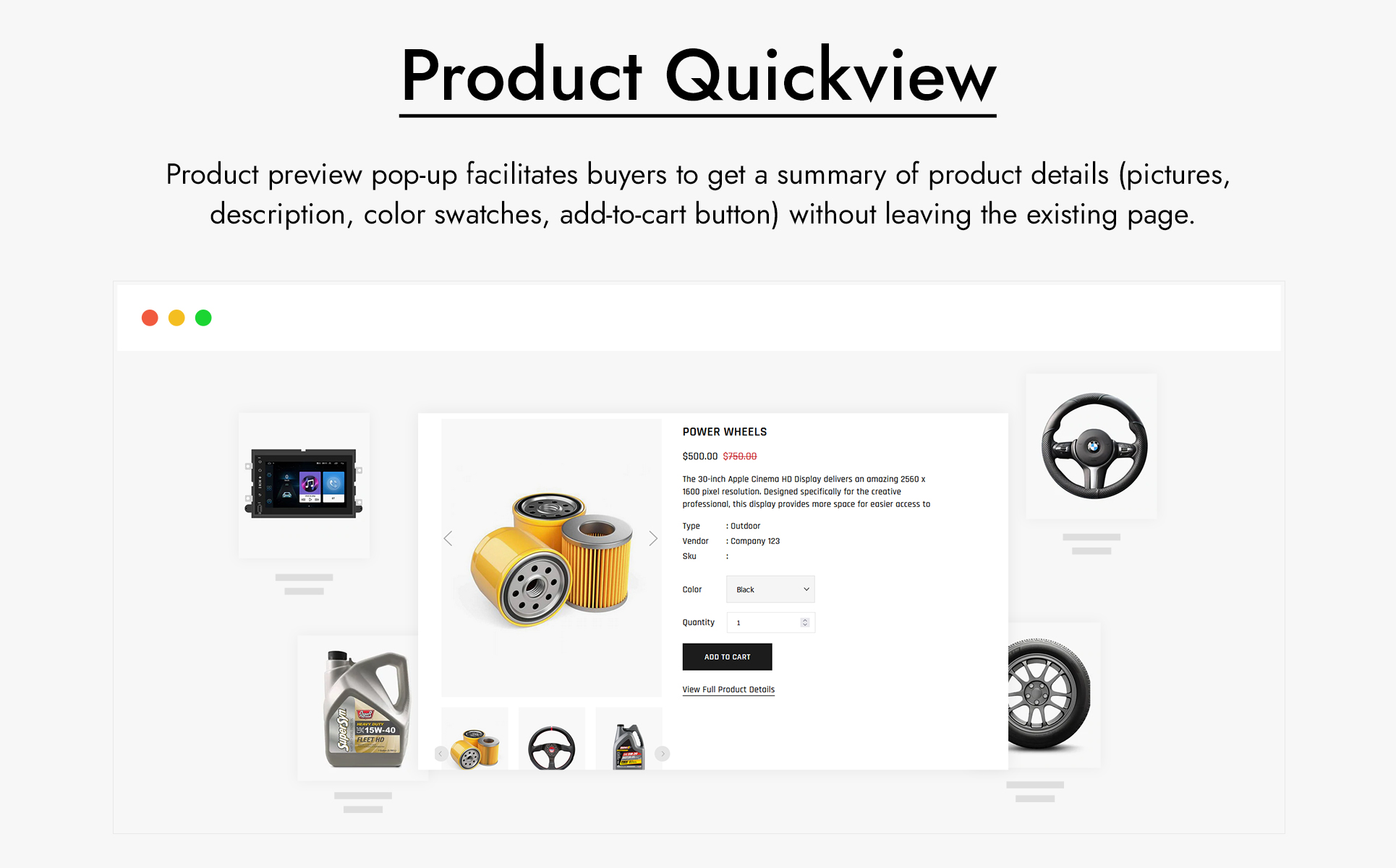 AutoWey is an advanced and powerful Shopify theme specifically tailored for motor tool stores, car parts & accessories stores, garage tool stores, and other similar businesses. This user-friendly and responsive theme holds numerous customization options & multiple browser compatibility. However, Modifying the theme and creating an attractive eStore requires no coding experience. It offers a strong range of traits as well as a magnificent appearance that will capture the attention of visitors. The theme's SEO-friendly features can aid you to get your business on top of the SERPs, bringing in more prospective consumers, and increasing revenues!