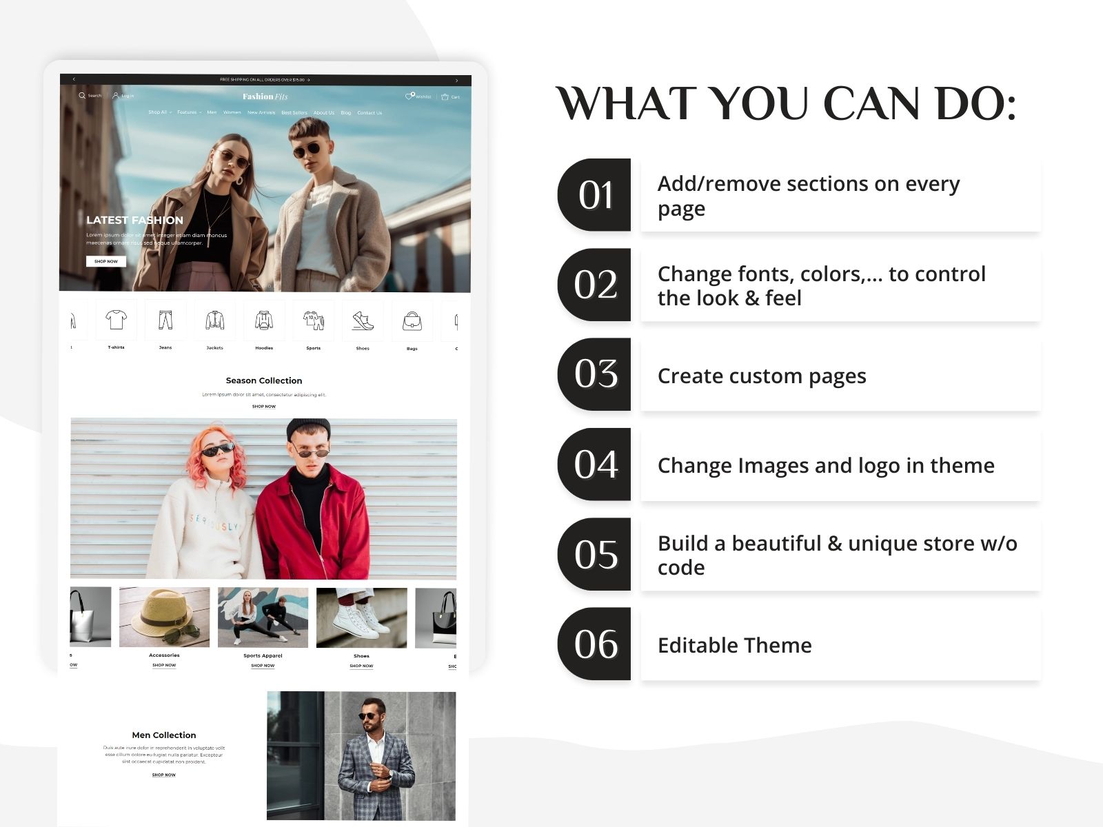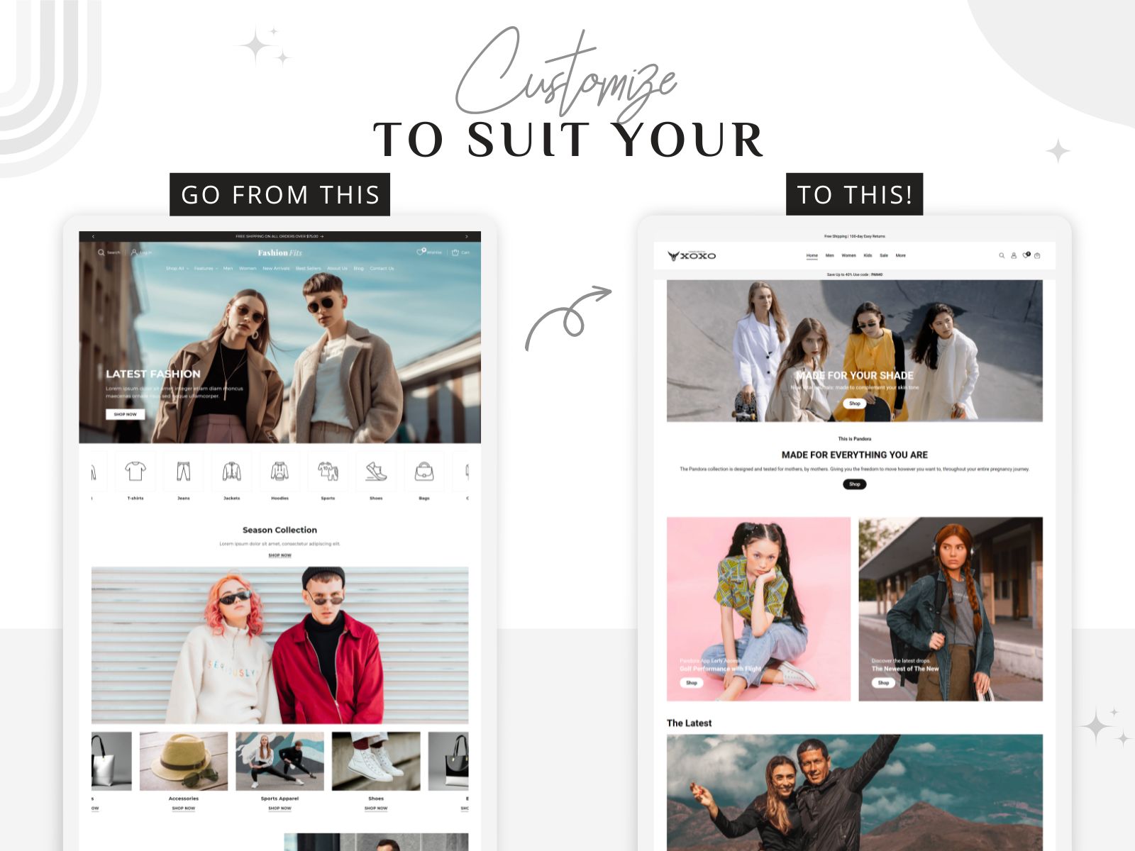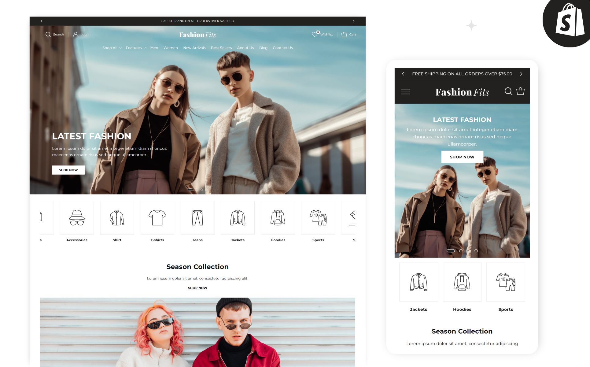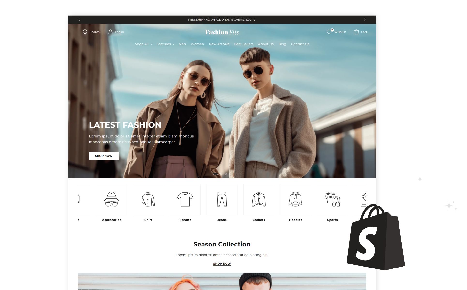 Showcase your apparel collections in unparalleled style with Shopify Fashion Fits, the ultimate Shopify 2.0 theme crafted for fashion retailers. Designed with elegance and functionality in mind, this theme offers seamless navigation, visually captivating layouts, and a premium shopping experience that elevates your brand. Perfect for showcasing a wide range of clothing collections, Shopify Fashion Fits ensures your store stands out with modern design and an intuitive user interface. Fully responsive and optimized for all devices, this theme helps you create a lasting impression while providing customers with an effortless shopping journey.