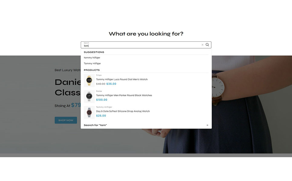 Enable customers to explore different watch colors, strap materials, and styles with interactive product swatches. The advanced filtering system allows shoppers to filter by brand, price, material, and other attributes, making it easier to find their perfect watch. Improve user engagement with a Quick View feature that allows shoppers to preview product details without leaving the current page. The AJAX Add to Cart function ensures a smooth shopping experience by letting users add items to their cart without reloading the page.