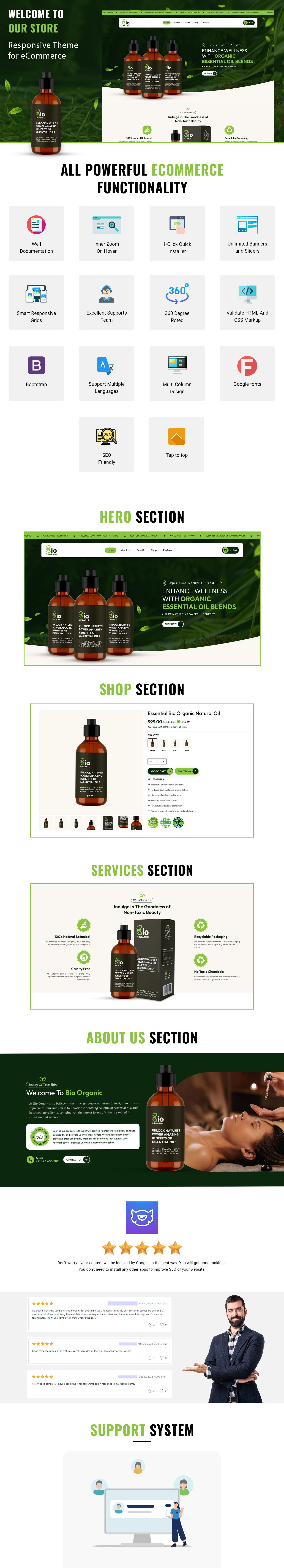 With its minimal and clean design, integrated free Google Fonts, and an awesome unique look, Bio Organic balances elegance with usability. You can easily customize every element without touching a single line of code, while the well-commented files and complete documentation make setup simple, even for beginners.