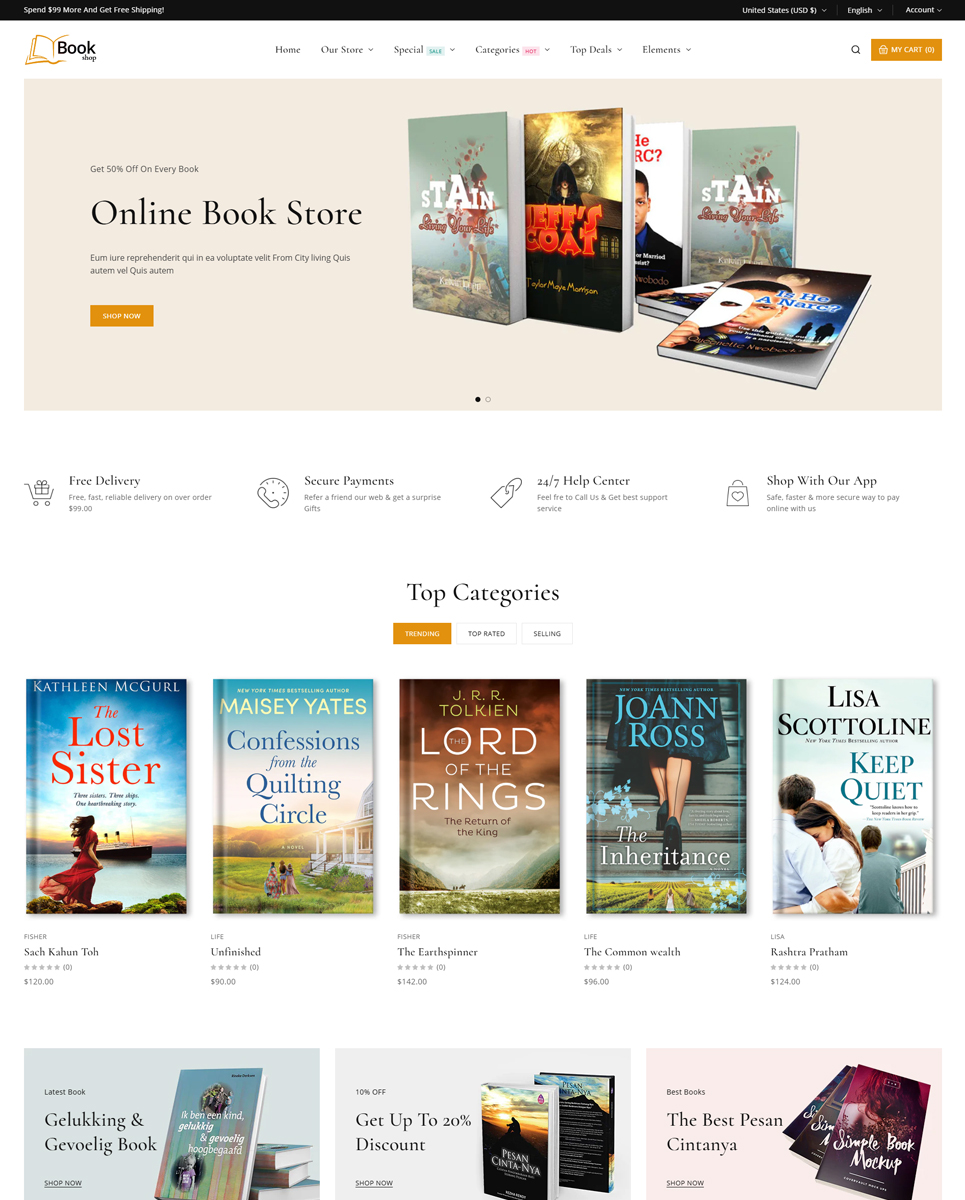 BookShop offers a high level of customization, enabling store owners to personalize colors, fonts, and layouts without coding. The theme is optimized for fast loading speeds and SEO, ensuring better visibility in search engines.