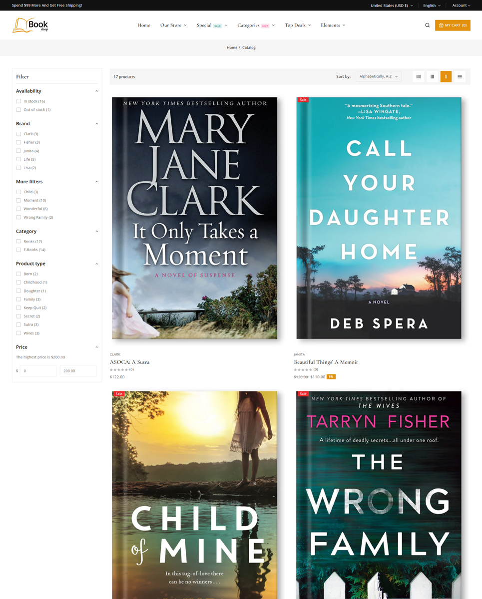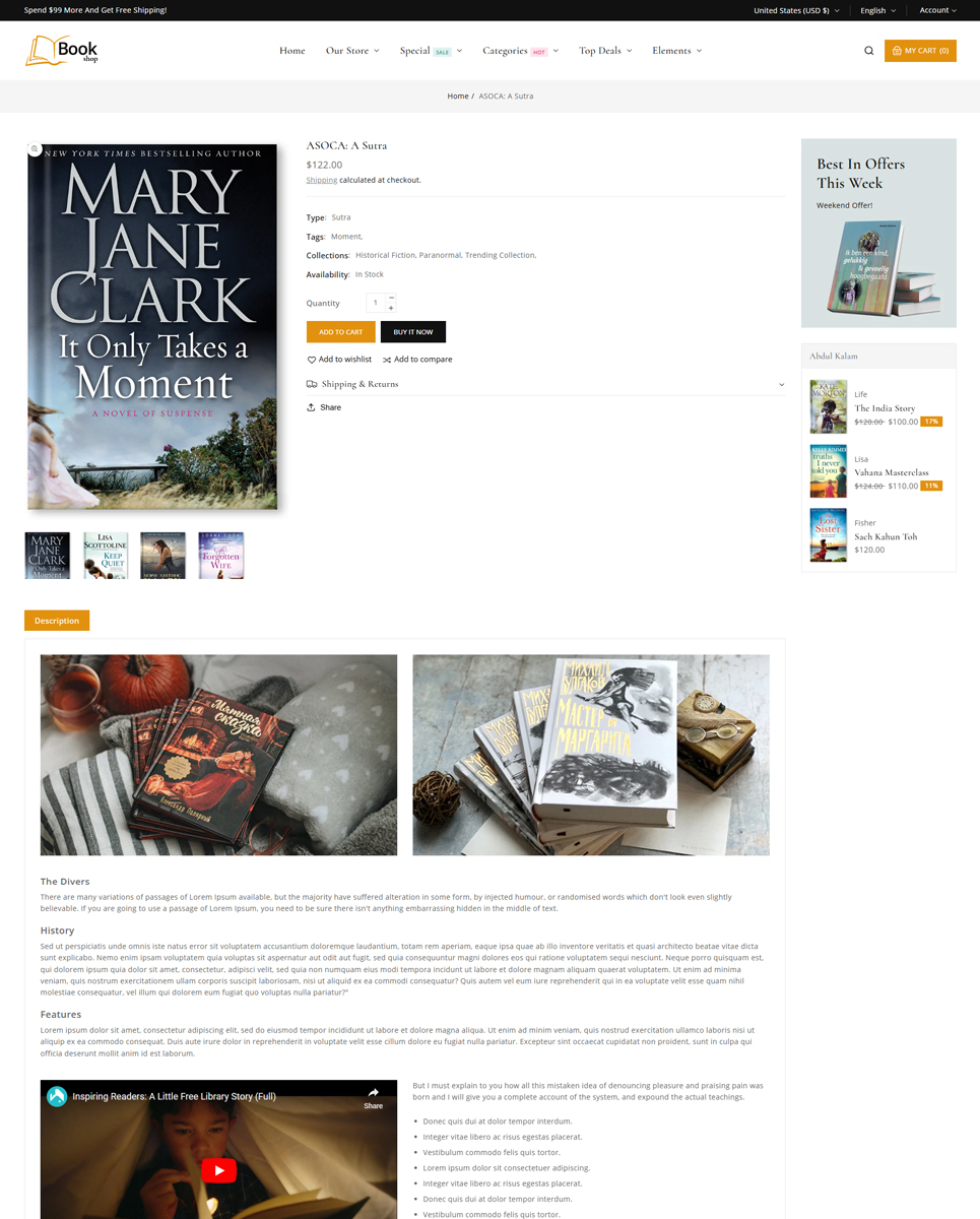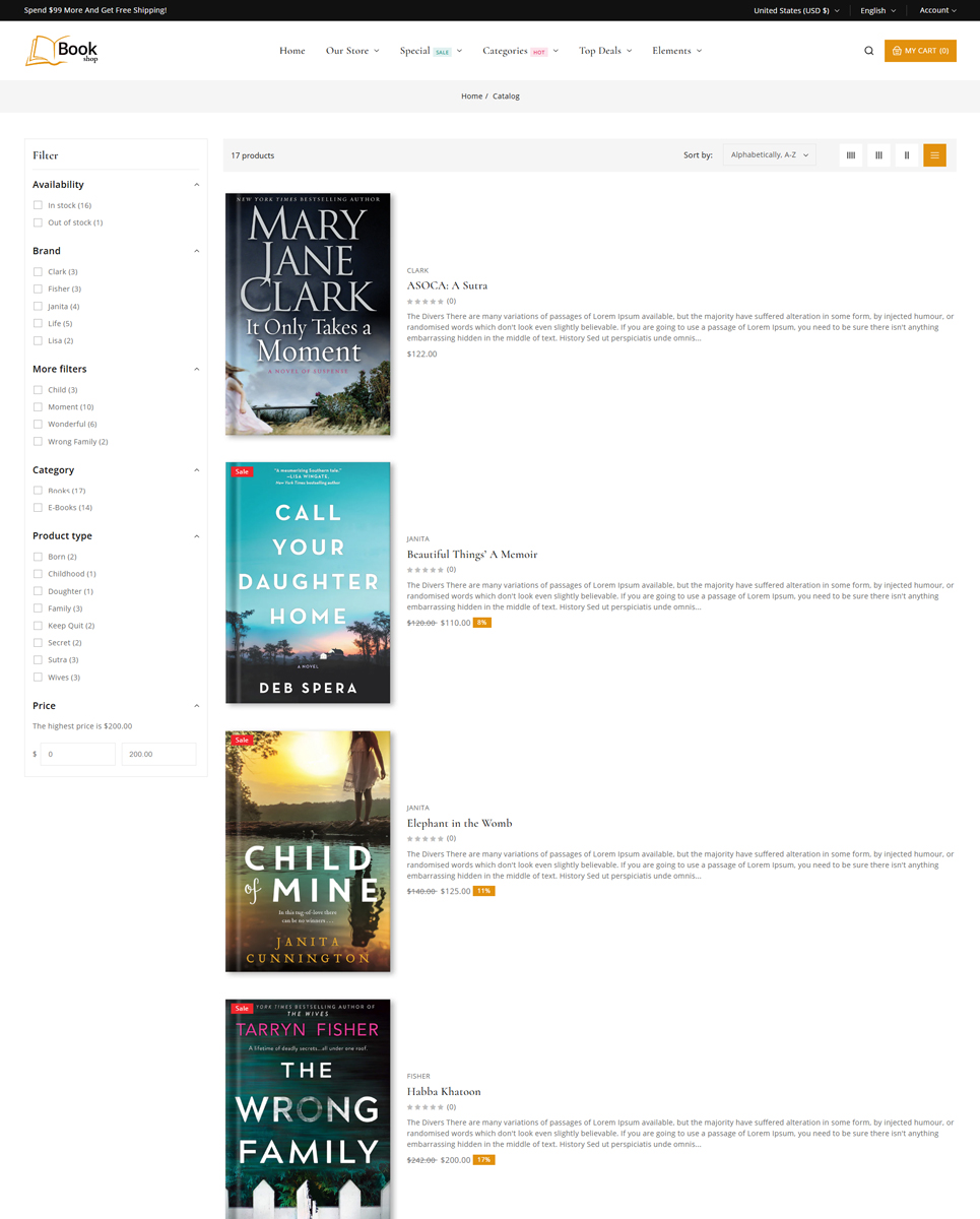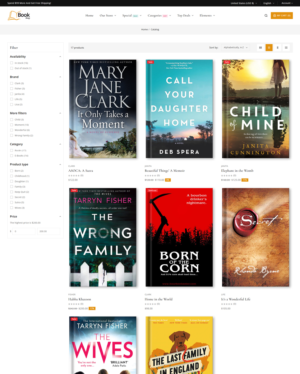 BookShop is built with Shopify's latest functionalities, ensuring smooth performance and seamless transactions. Key eCommerce features include: