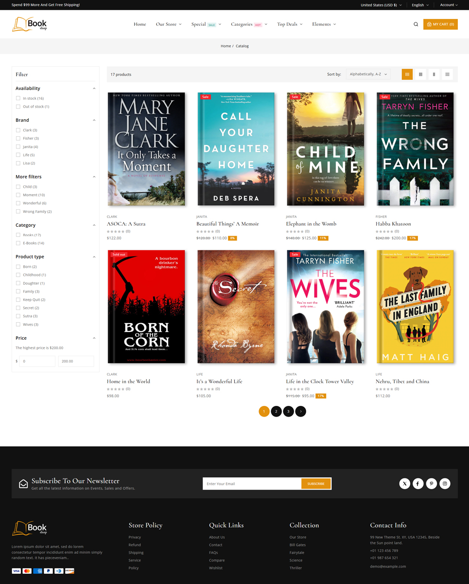 - Advanced Product Filtering – Customers can quickly refine their search based on categories, authors, or price range.